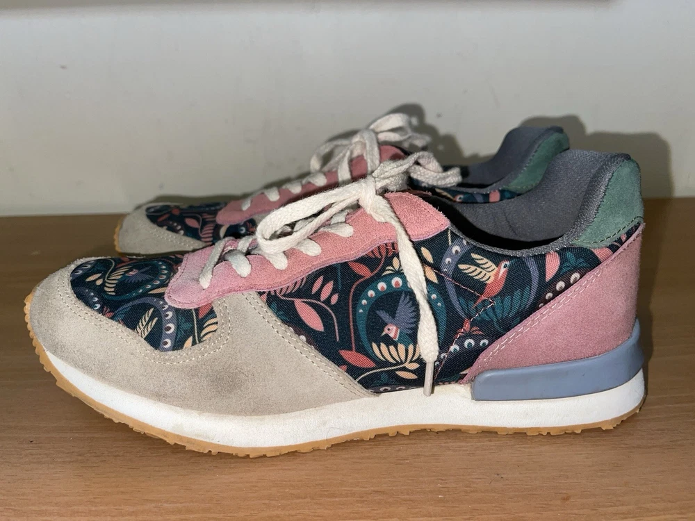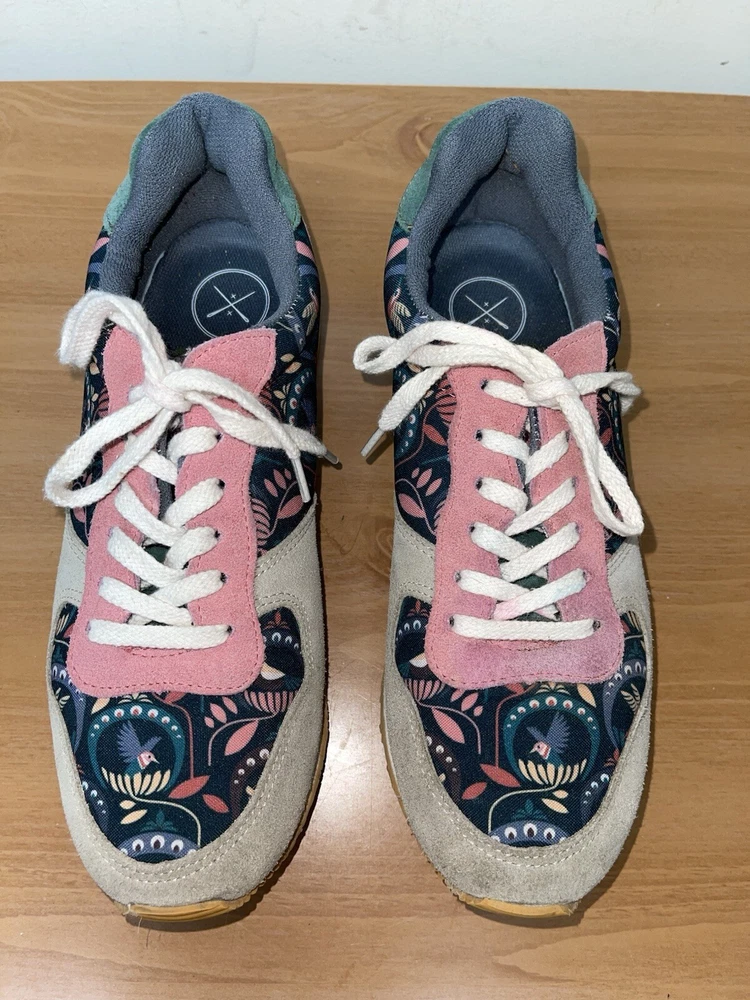 Step into style with these Inkkas Passerine Joggers. The floral pattern and leather upper material give off a bohemian and nature-inspired vibe, perfect for any casual or activewear occasion. The lace-up closure and low top shoe shaft style ensure a comfortable and secure fit, while the leather outsole and insole material provide durability and added comfort. These sneakers are available in US shoe size 10 and EU shoe size 41, making them a perfect fit for any woman. Whether you're heading to a festival or just running errands, these sneakers are the perfect addition to your wardrobe. In great condition. Shipped with USPS ground advantage.