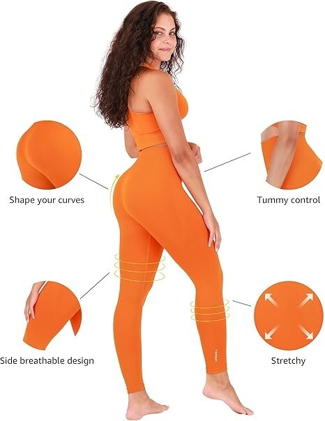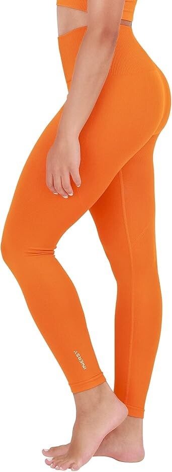 SIZE UP FOR RELAXED FIT: With fabric of 94% nylon and 6% spandex, the material of INNERSY womens leggings is thick and durable, and with moderate stretch. Please check the size chart before order, and we suggest to choose size up for relaxed comfort HIGH RISE & TUMMY CONTROL: The 4.4 inch wide high waisted leggings offer more coverage on tummy and back. The waist stays up in place nicely when bending or squatting and will not roll down. The double-layer ribbed waist provides with firmer control and support on the tummy. No muffin top or digging in. The compression leggings have a nice snug, which are comfortable in your sports SQUAT PROOF LEGGINGS: The workout leggings for women are made from 4-way stretchy fabric, they provide with a compressive fit and conform with each movement, you can squat, stretch or do any pose freely. Thick and opaque fabric are non see through while squat, bend or twist while you can show your beautiful body curve SUITABLE FOR DIFFERENT OCCASIONS: INNERSY moisture-wicking yoga pants are good options for any type of workout or daily wear. Sports, workouts, training, gyms, dance, pilates, cycling, fitness, exercise, yoga, running, walking, jogging or lounging. These ladies/girls leggings come in many colors-black, orange, green and blue, to match your style or personal look CRAFTED DETAILS & EASY CARE: The details make these gym leggings more comfortable. The oval shaped crotch reduces irritation and relieves stress to make them comfortable and flexible during sports. The interlock seams inside the legs reduce rubbing and chafing. The comfy yoga leggings are machine washable. Do not bleach and tumble dry low