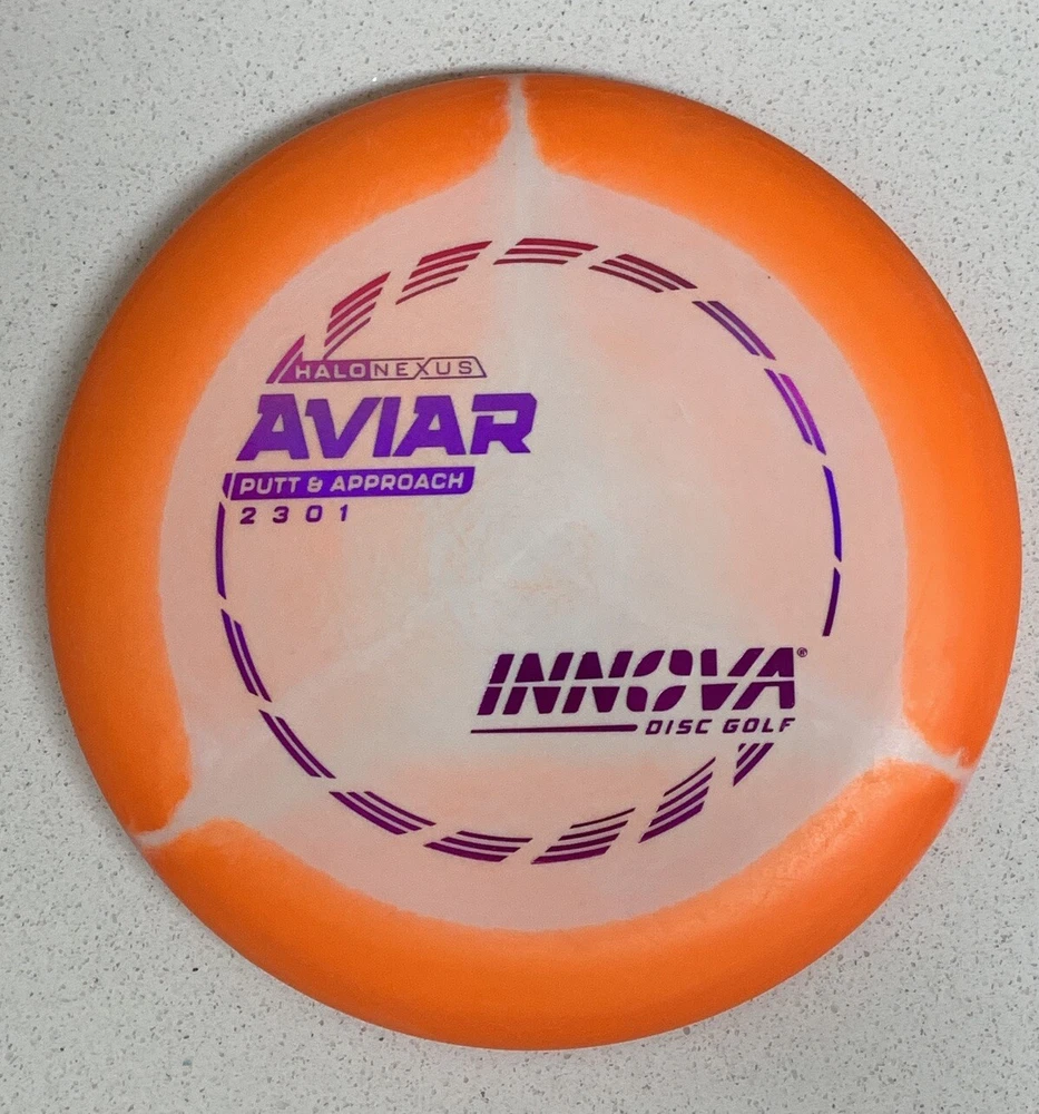 This Innova Disc Golf 2022 175g Beadless Halo Nexus AVIAR is a must-have for any disc golf enthusiast. With its vibrant orange and purple colors, this disc is sure to stand out in your bag and on the course. Its Max Weight Beadless design provides a consistent and reliable flight, making it a great choice for both beginners and seasoned players. The Innova Max Weight Beadless Halo Nexus AVIAR is a high-quality disc golf disc that is perfect for any game. Its unique design and excellent performance make it a great addition to your collection. Whether you're looking to improve your game or just have fun, this disc is sure to exceed your expectations.
