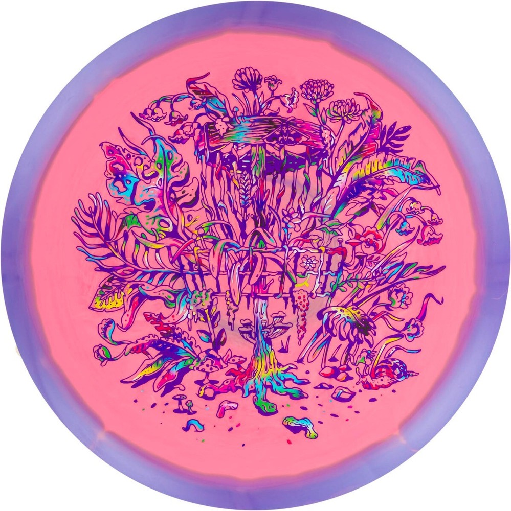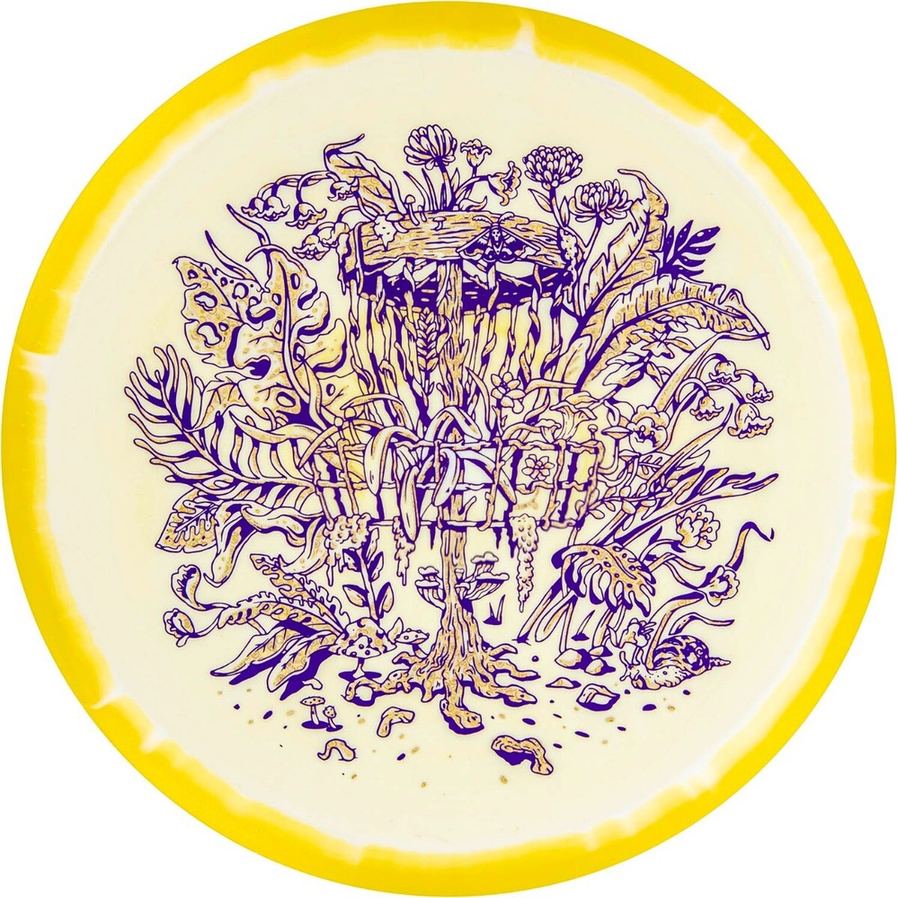 Please Note: Stamps colors and the exact hue of the disc color will vary from sample images. Everyone talks about growing the game. Well, our TreeCatcher design featured on the Halo Star Rollo is literally doing that. Made from vines, leaves, and other organic material, this DISCatcher sprouted straight from the natural world. **A Tony Diaz 2-Color Design Notice: Halo effect will vary. How this batch of Halo Star Rollo feels: Moderate to noticeable dome. Big on grip. More about the stamp: Disc golf and nature are inseparable. Nowhere is that more evident than in our TreeCatcher design by artist Tony Diaz, where Mother Nature has provided a genuinely organic target. From toadstools on the pole to lush leaves folding over the cage to moths resting on the band, this basket is certainly one with nature. More about the disc: Gone are the days of waiting to break-in that perfect understable disc. Just put some pop on a flat release and sure enough, the Rollo flips without question. Add some hyzer on it and, poof, you’ve got instant hyzer flips. Flight Numbers: 5 / 6 / -4 / 1