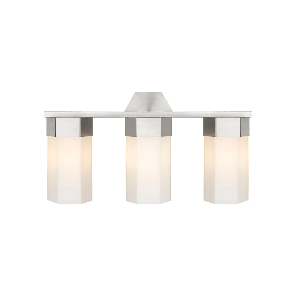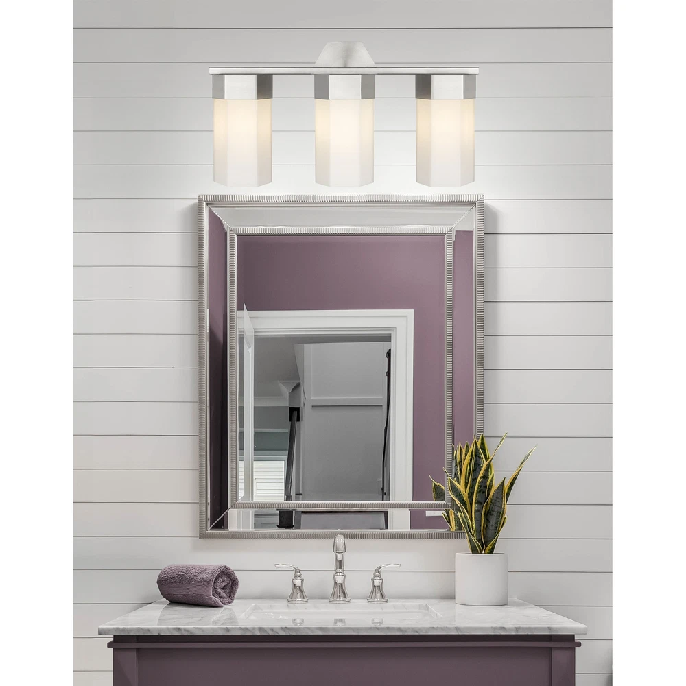 Geometric design is the star of the Claverack Collection. The hexagonal details of the metal frame is accentuated by the similarly shaped glass shades. Claverack offers a full line of fixtures to suit any project or space.UL/CUL Damp RatedRated for 100 watt maximum per socketCompatible with Incandescent, LED, Fluorescent and Halogen bulbsWall-mounted with 2mm heavy cast backplateFixture may be mounted up or downFeatures hexagon design details and glass shadesWeight: 9.1 poundsBulb Shape: T SeriesSocket Type: E26Light Bulb Included: NoFixture Dimmable: Yes Free Shipping Over $49.99* Details Innovations Lighting Claverack - 3 Light 9" Wall-Mounted Bath Vanity Light Product Description: Geometric design is the star of the Claverack Collection. The hexagonal details of the metal frame is accentuated by the similarly shaped glass shades. Claverack offers a full line of fixtures to suit any project or space. UL/CUL Damp Rated Rated for 100 watt maximum per socket Compatible with Incandescent, LED, Fluorescent and Halogen bulbs Wall-mounted with 2mm heavy cast backplate Fixture may be mounted up or down Features hexagon design details and glass shades Weight9.1 pounds Bulb ShapeT Series Socket TypeE26 Light Bulb IncludedNo Fixture DimmableYes