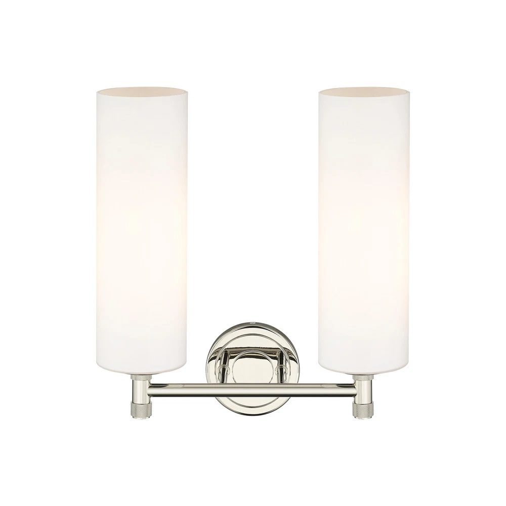 Details abound in the Crown Point Collection with an industrial take on modern sophistication. This stunning line of fixtures features cylindrical glass set in an updated restoration style frame with intricate knurling detail on the sockets, canopy, and finials.The Crown Point collection includes knurled detailingUL/CUL Damp RatedRated for 100 watt maximum per socketCompatible with Incandescent, LED, Fluorescent and Halogen bulbsWall-mounted with 2mm heavy cast backplateWeight: 3.9 poundsShade Dimensions: 3.88 inch length x 3.88 inch width x 12 inch heightTop to Outlet/Mount: 2.25 inchesBackplate Dimensions: 0.75 inch extension x 4.5 inch width x 4.5 inch heightSocket Quantity: 2Fixture Dimmable: Yes Free Shipping Over $49.99* Details Innovations Lighting Crown Point - 2 Light 12" Wall-Mounted Bath Vanity Light Product Description: Details abound in the Crown Point Collection with an industrial take on modern sophistication. This stunning line of fixtures features cylindrical glass set in an updated restoration style frame with intricate knurling detail on the sockets, canopy, and finials. The Crown Point collection includes knurled detailing UL/CUL Damp Rated Rated for 100 watt maximum per socket Compatible with Incandescent, LED, Fluorescent and Halogen bulbs Wall-mounted with 2mm heavy cast backplate Weight3.9 pounds Shade Dimensions3.88 inch length x 3.88 inch width x 12 inch height Top to Outlet/Mount2.25 inches Backplate Dimensions0.75 inch extension x 4.5 inch width x 4.5 inch height Socket Quantity2 Fixture DimmableYes