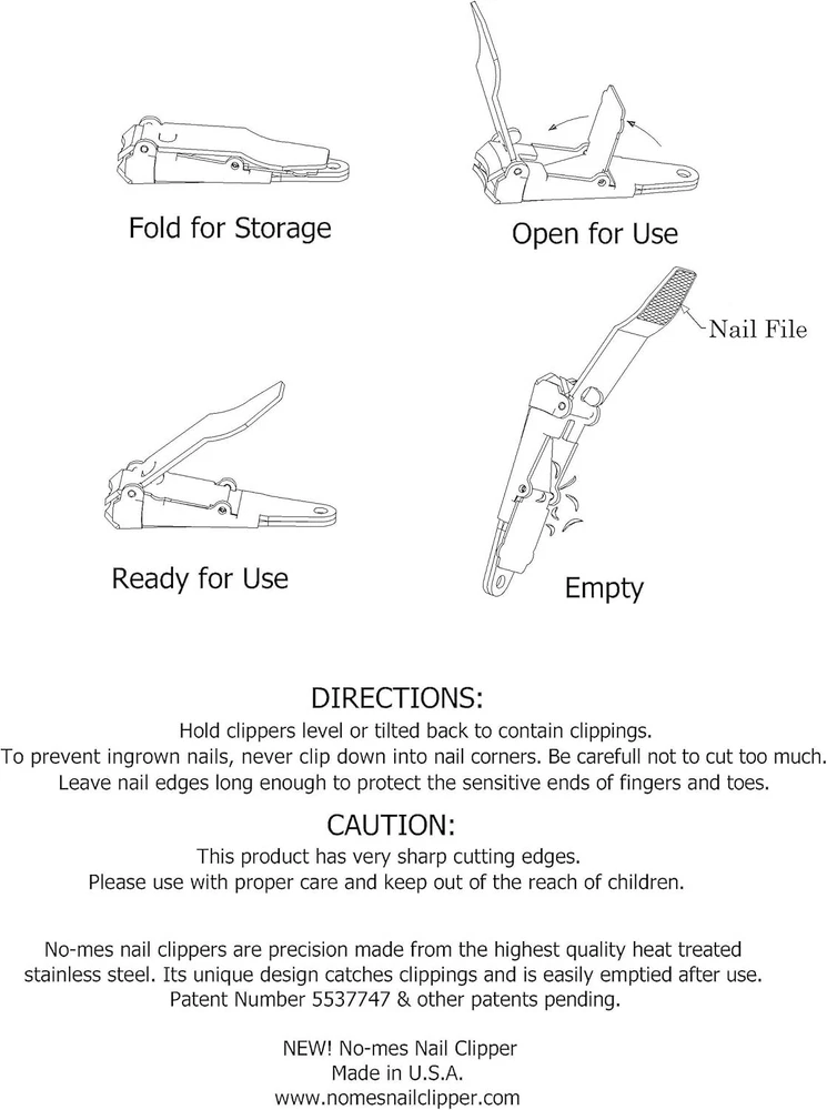 Innovative Nail Clipper Set Made in USA with Built-in Nail File - Silver Finish ‹ › ‹ › ‹ › ‹ › ‹ › ‹ › ‹ › Innovative Nail Clipper Set Made in USA with Built-in Nail File - Silver Finish Features: Unique Patented Design: Catches nail clippings and is easily emptied. Stable Handle: Does not swivel like ordinary nail clippers, ensuring easy control and grip. Precision Ground Cutting Edges: Designed for smooth and even nail cutting. Convenient Built-in Nail File: Fingernail and toenail clippers include a high-quality laser cut nail file. Lifetime Guarantee: Unconditional lifetime guarantee and proudly 100% made in the USA. Compact Storage: s design folds up for easy storage. Ergonomic Grip: Provides comfort and control for both fingernails and toenails. Premium Quality: Made entirely from heat treated, high carbon surgical stainless steel. Benefits: Eliminates the mess associated with traditional nail clippers. Comfortable, ergonomic hold for precise nail cutting. Convenient built-in file for post-clipping smoothing. Durable and high-quality construction for long-lasting use. Perfect as a unique gift for loved ones. Why choose our Innovative Nail Clipper Set? If you seek a nail clipping experience that merges functionality with precision, this Innovative Nail Clipper Set is your solution. Designed to ensure that your nail clippings stay contained, this set redefines convenience. The non-swiveling handle provides unmatched control, while the ergonomic grip makes nail grooming a pleasure rather than a chore. Embrace the American ingenuity that prioritizes your grooming experience. Order your Innovative Nail Clipper Set now and enjoy a lifetime of mess-free manicures! Shipping Free & Fast Shipping - We offer free shipping to most of the USA with a normal delivery time of 3-7 days. However, due to the current situation, additional delivery time (up to 3 weeks) may be required for some items. Alternative Carriers - We may use alternative carriers (e.g. USPS, FedEx, UPS, etc.) to ensure your package arrives safely and on time. Due to the use of multiple carriers, we are unable to provide a tracking number automatically. Handling Time - Orders are processed and shipped within 1-2 business days of receiving cleared payment. Shipping Restrictions - Shipping to Alaska, Hawaii, Puerto Rico, Guam, and other US territories may incur shipping charges or delivery restrictions. Please contact us before ordering, or your order can be refunded/cancelled. State Restrictions - There may be restrictions based on your state of purchase. For example, certain items may not be shipped to California due to state regulations. Contact for Tracking Updates - If you require tracking updates or have any concerns about the delivery of your order, please feel free to contact us, and we will be happy to assist you. Return 30-Day Hassle-Free Returns - We want you to be completely satisfied with your purchase. If you are not, you can return the item within 30 days of receiving it for a full refund or exchange. Easy Return Process - To start a return, simply contact us and we will provide you with a prepaid return shipping label and detailed instructions. Restocking Fee - There are no restocking fees for returns. However, the buyer is responsible for return shipping costs if the return is not due to a seller's error. Refund Processing Time - Refunds will be processed within 5 business days of receiving the returned item in its original condition. Payment We accept all major credit cards, PayPal, and Apple Pay for your convenience. Your payment information is secure and encrypted to ensure a safe and seamless transaction. Please complete your payment within 3 days of purchase to avoid any delays in shipping. Feedback Your feedback is extremely important to us. We strive to provide the best products and customer service possible. If you are satisfied with your purchase, please take a moment to leave us a positive review. If you have any concerns or issues with your order, please contact us before leaving negative feedback. We are committed to resolving any problems and ensuring your satisfaction. Contact Us If you have any questions or concerns, please feel free to reach out to our customer support team. You can contact us through the eBay messaging system. We are available Monday to Friday, 9:00 am to 5:00 pm EST, and we will do our best to respond to your inquiry within 24 hours. Buy it now and enjoy a pleasant shopping experience! UPC: Not Set Unit Quantity: 3.21 Set Includes: Nail File,Nail Clipper Material: Stainless Steel Features: Ergonomic Grip,Catches Clippings,Easy to Hold,Precision Ground Cutting Edges,Built-in Laser Cut Nail File,Compact Storage,Lifetime Guarantee Brand: Unbranded Type: Nail Clippers Set Power Source: Manual MPN: Not Set Power: Not Set Color: Silver Country/Region of Manufacture: Not Set Model: Not Set Unit Type: oz Personalize: Not Set