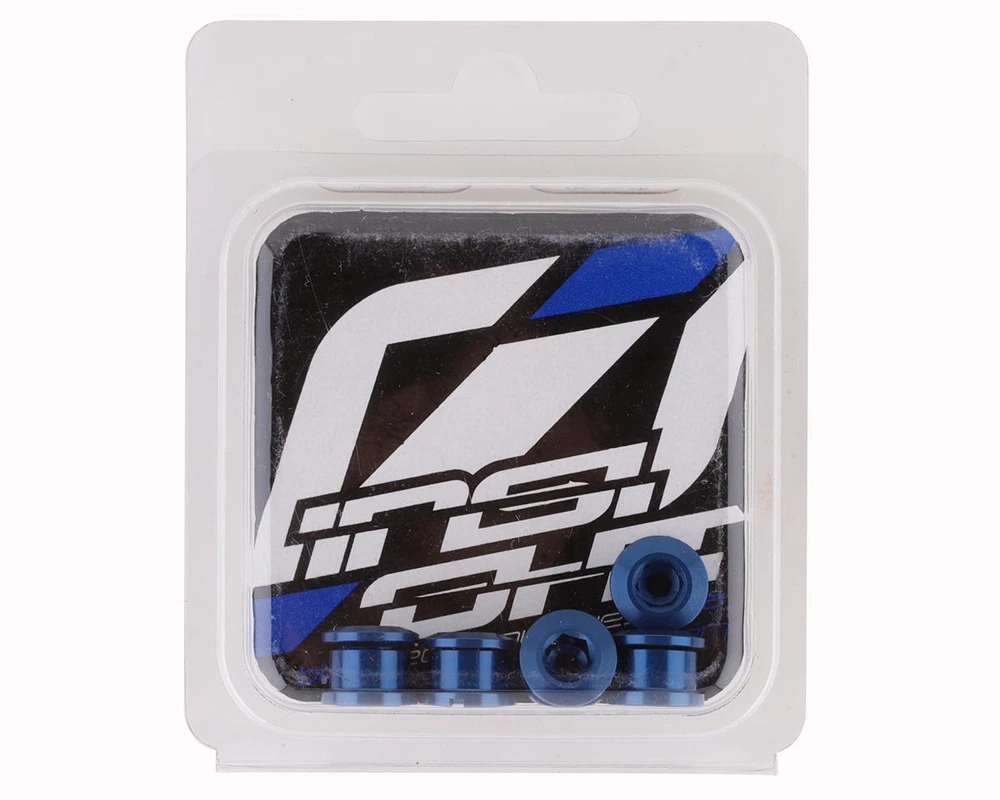 This product is also available in 8.5mm. Insight Alloy Chainring Bolts Description: The Insight Alloy Chainring Bolts include a set of five aluminum bolts. Works with most 4 and 5 bolt chainrings. Specifications: Bolt: 6.5mm & 8.5mm options Nut: 4mm Color: Blue Weight: 0.28 oz (8g) About Us | View Store