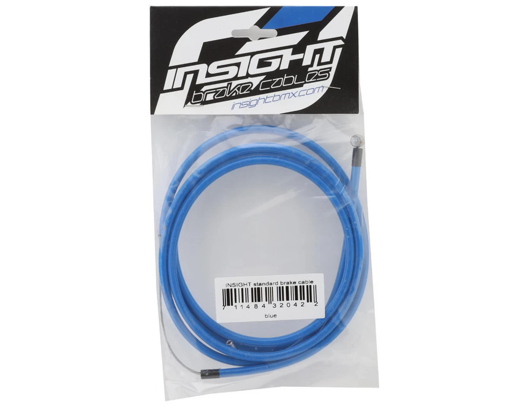Insight BMX Brake Cable Description: The Insight brake cable features a 1.5mm thick pre-stretched inner cable with 60mm long coil housing for plenty of adjustment. Available in a wide range of colors. Features: Linear housing with specific stainless steel cable wire 2 black brass ferrules 2 black alloy cable end caps Specifications: Weight: 3.81 oz (108g) Color: Blue About Us | View Store