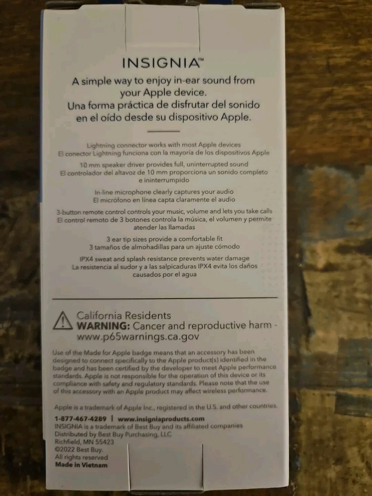Insignia - Lightning Connector Wired Earbuds Headphones - White NIB