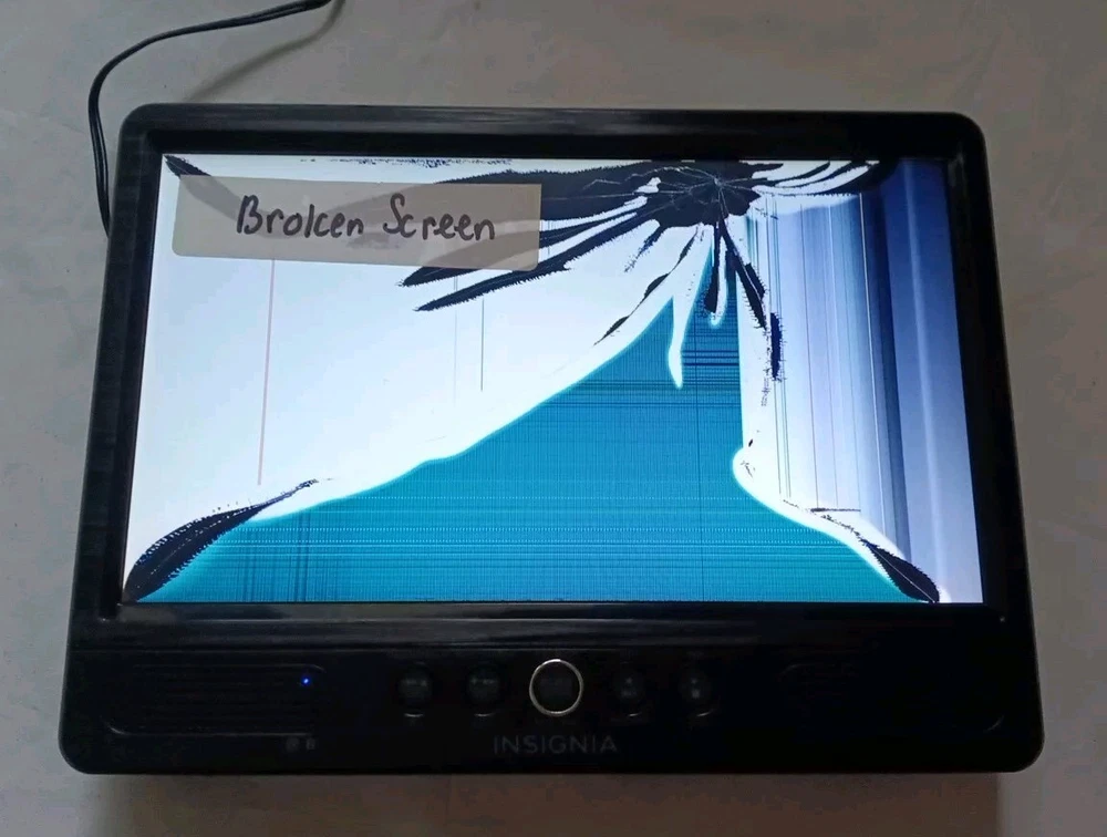 Insignia NS-DD10PDVD19 10 inch Screen Portable DVD Player SOLD AS IS FOR PARTS OR REPAIR Portable DVD players may have the following problem(s) Broken Screen (Internal) Since we have a lot of them, screen damaged varies No Video Dead-Does not power on Won't Read Disc BAD Screen ( Lines on certain spot) ETC Please select your defective problem on top of the page. We only test the unit by powering it on, NO FURTHER TESTING. So it may have other problems/issues. Items do not come with a retail box and no accessories. Please be aware, this item is DEFECTIVE, the item will show sign of usage. Pictures are examples of the item. Free shipping