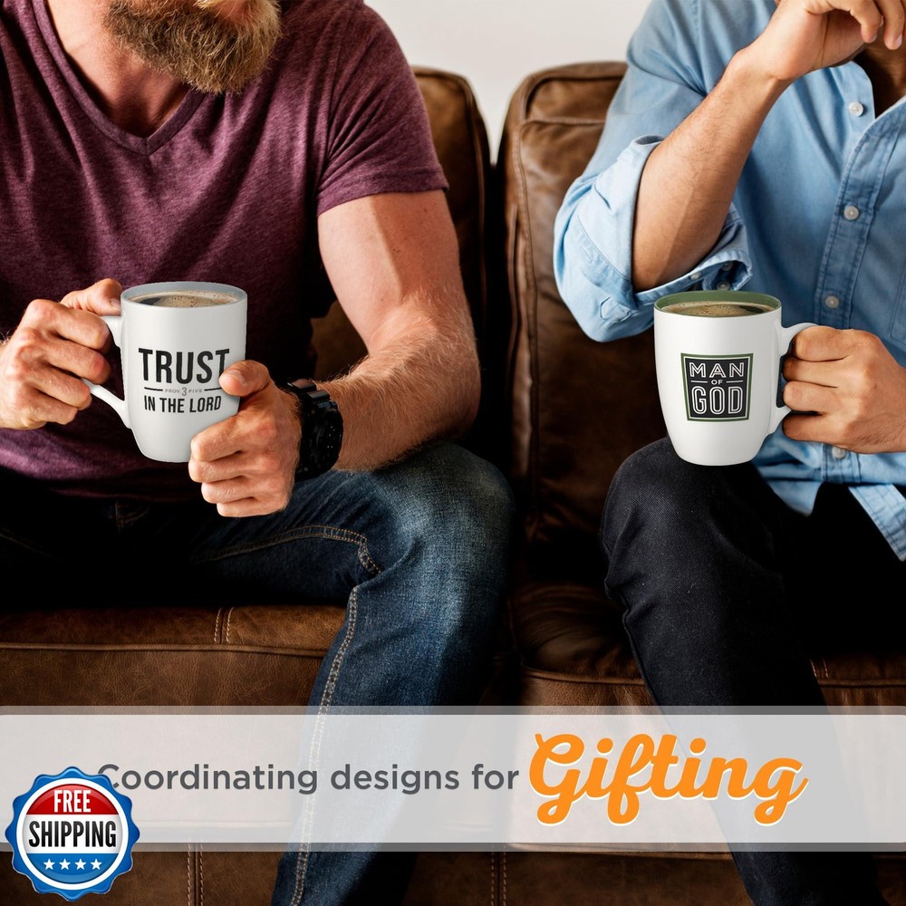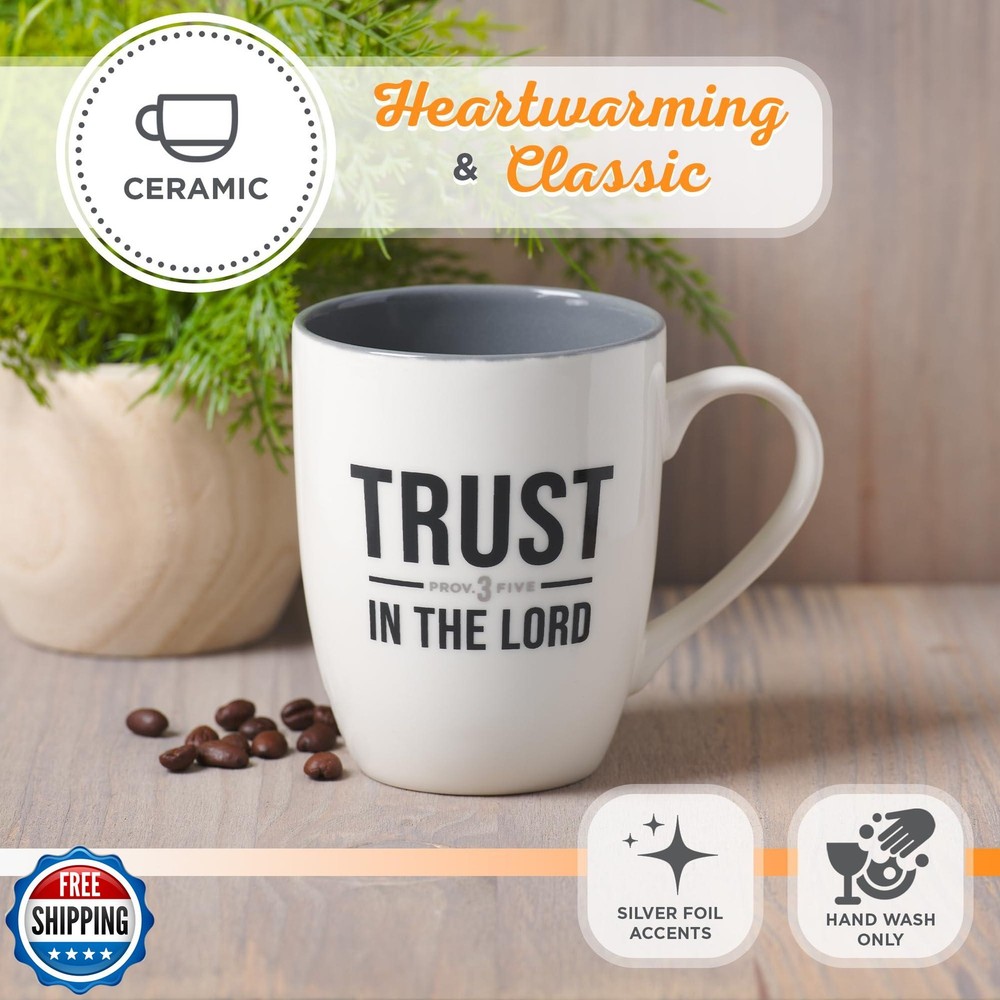 Christian Art Gifts Inspirational Ceramic Coffee and Tea Mug for Men and Women: Trust in the Lord Encouraging Bible Verse Proverb, Lead-free Novelty Drinkware w/Silver Foil, White and Dark Gray, 12 oz. Features Motivating Faith-based Scripture Present for Men & Women: Delight that special man or woman in your life and be a blessing at the same time by gifting this cheerful creamy white & dark gray sipping mug with touches of silver foil. The elegant, hand-made beverage cup features an excerpt from the beloved Bible verse passage Proverbs 3:5: "Trust in the Lord". A Comforting Message from God's Word: The handsome 12 oz. double sided mug displays the stylish, bold black text front and center on both sides. The verse reference is printed in a smaller font in shiny silver foil. This stunning drinkware features a sleek glazed dark gray interior and rim and snow white exterior. Lasting Quality Drinkware for Your Home Kitchen Cabinet: This sturdy, in-house designed cup is lead-free, cadmium-free, and purity tested ensuring a non-toxic drinking experience. It also features a durable, lovely white easy grip handle. Perfect for everyday day use and makes an excellent gift idea for fathers, grandparents, uncles, friends, boyfriends, church leaders, and teachers. Brighten Your Mornings and Touch a Friend's Heart: This elegant novelty hot and cold beverage mug is not microwave or dishwasher safe due to the shiny silver foil accents. Hand wash is recommended. It can be used with your favorite mug warmer and rests perfectly on a coaster. Spread a message of hope and joy as you gift this wonderful, inspiring novelty Christian drinkware to a loved one. Faith, Hope, & Love: Christian Art Gifts offers a wide variety of Scripture print items. From Bible Covers, Coloring Books, Journaling Bibles, Journals, Planners, and Devotional Books, the company strives to bring the best quality products with a special message of hope and encouragement on each and every one. Shipping Free & Fast Shipping: We offer free shipping to most of the USA with a normal delivery time of 3-7 days. However, due to the current situation, additional delivery time (up to 3 weeks) may be required for some items. Alternative Carriers: We may use alternative carriers (e.g., USPS, FedEx, UPS) to ensure your package arrives safely and on time. Due to the use of multiple carriers, we are unable to provide a tracking number automatically. Handling Time: Orders are processed and shipped within 1-2 business days of receiving cleared payment. Shipping Restrictions: Shipping to Alaska, Hawaii, Puerto Rico, Guam, and other US territories may incur shipping charges or delivery restrictions. Please contact us before ordering, or your order can be refunded/cancelled. State Restrictions: Certain items may not be shipped to California due to state regulations. Contact for Tracking Updates: If you require tracking updates or have any concerns about the delivery of your order, please feel free to contact us, and we will be happy to assist you. Return Policy 30-Day Hassle-Free Returns: If you are not completely satisfied with your purchase, you can return the item for free within 30 days of receiving it for a full refund or exchange. Easy Return Process: Contact us, and we will provide you with a prepaid return shipping label and detailed instructions. No Restocking Fee: There are no restocking fees for returns. However, the buyer is responsible for return shipping costs if the return is not due to a seller"s error. Refund Processing: Refunds will be processed within 1 business day of receiving the returned item in its original condition. Feedback Your feedback is extremely important to us. We strive to provide the best products and customer service possible. If you are satisfied with your purchase, please take a moment to leave us a positive review. If you have any concerns or issues with your order, please contact us before leaving negative feedback. We are committed to resolving any problems and ensuring your satisfaction. Contact Us If you have any questions or concerns, please feel free to reach out to our customer support team. You can contact us through the eBay messaging system. We are available Monday to Friday, 9:00 am to 5:00 pm EST, and we will do our best to respond to your inquiry within 24 hours. Thank you for supporting our small family business!