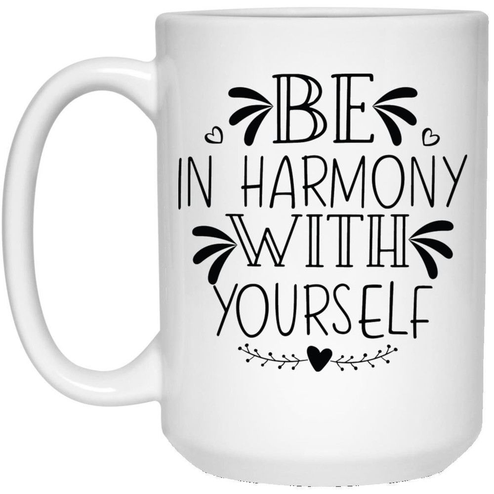 Coffee Mug Be In Harmony With Yourself Motivational Gift Inspirational Mug Funny Product Details.. This high quality 11oz. ceramic white mug has a premium hard coat that provides crisp and vibrant color reproduction sure to last for years. Perfect for all hot & cold beverages. The highest quality printing possible is used. It will never fade no matter how many times you wash it. Material: 100% Ceramic. Print both sides. Dishwasher and Microwave Safe. High Gloss + Premium White Finish. Printed in the U.S.A. Personalized & Custom. We support personalized and custom mug to add custom, when placing an order, you can add notes to the "order note" in shipping address section. Also you can contact us directly via message. Shipping Info. Ready to ship in 1 to 2 business days, All products are made-to-order and proudly printed in the United States. Shipped by USPS and DHL, You will receive your order in 5-7 days. Replace & Refund. All products are defective during shipping broken, chipped will be replaced free of charge. You are not satisfied with the product, we will refund 100% money to you. If any other issues arise, please do not hesitate to message, we would be more than happy to assist you.
