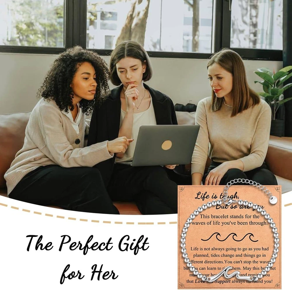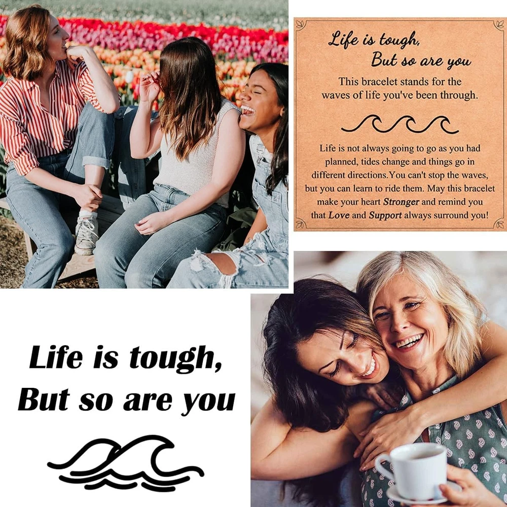 Free eBay listing template designed by dewiso.com Inspirational Gifts for Women, Wave of Life Inspirational Bracelet, Thinking of You Cheer Up Get Well Encouragement Gifts for Women Friends, Life is Tough But So are You FREE AND FAST SHIPPING! Inspirational Bracelets for Women: This wave bracelet stands for the waves of life she has been through. Send this strength bracelet as an encouragement gift and remind her "You can't stop the waves, but you can learn to ride them. Love and Support always surround you" Get Well Gifts for Women: "Life is tough, but so are you." Send this inspirational gift to her and Let her konw you are always thinking of her and supporting her. She will be cheered up and motivated. Inspirational Gifts Ideas: This strength bracelet is well packaged with a gift box, an encouragement card and an empty greeting card. It is ready to give as get well gifts, inspirational gifts, thinking of you gifts, healing gifts for women friends. Size: This beaded wave bracelet is measured around 7 inches + 2 inches extension chain, suitable for most women's wrists. Material: This wave bracelet is made of highly polished stainless steel 4mm beads and wave charm, which is safe and comfortable to wear. Product We offer a 30-Day Return Policy on items which you are not completely satisfied with. You have the option for a full-refund or an exchange of the item. No returns are available on items shipped outside of the US . Shipping We offer Free Shipping to the US and ship within 2 business days of payment, usually sooner. We use UPS express shipping. That's why your products are usually delivered within 3 days . Contact We try our very best to make sure every customer is completely satisfied. If there's a problem , message us! We're happy to help. 24/7 live chat available.