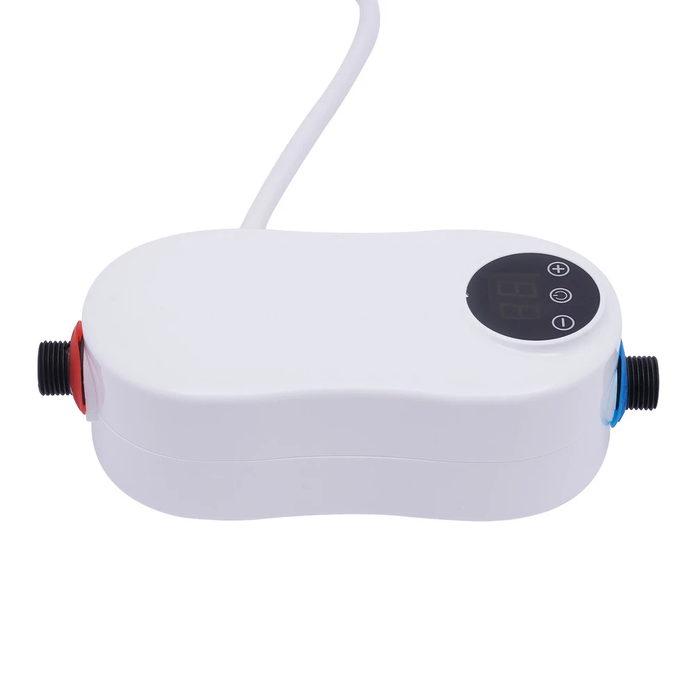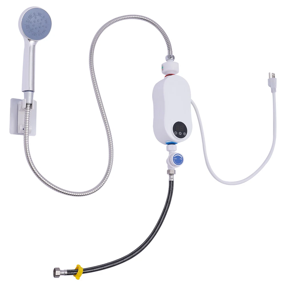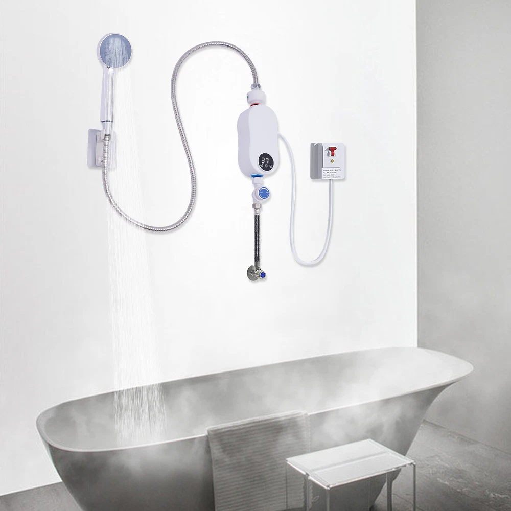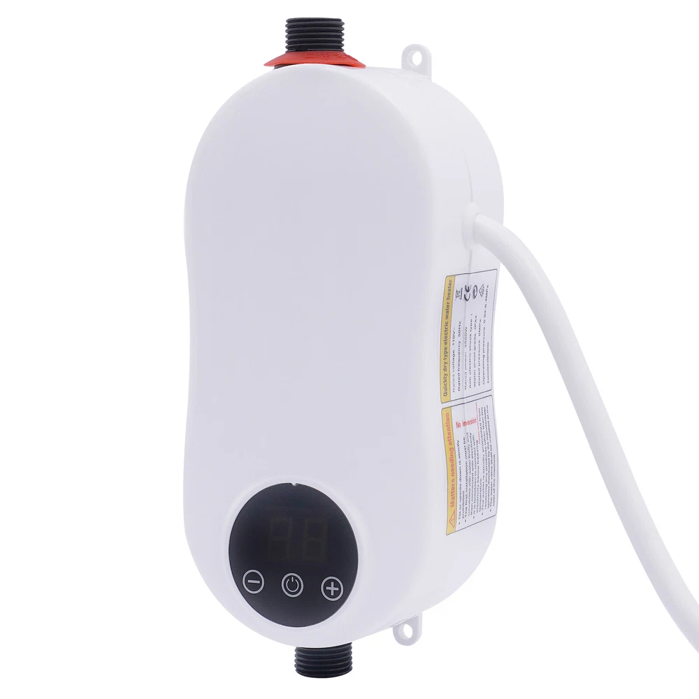 Specifications Color: White Material: ABS, Stainless Steel Shape: Gourd-shaped Style: Mini, Instant Mounting Type: Wall-mounted, Vertical Usage: Indoor Use Features: With Leakage Protection Water Inlet Mode: Lower Water Inlet Heating Method: Instant, Stainless Steel Heating Tube Power Source: Corded Electric Voltage: 110V Frequency: 50Hz Power: 3500W Rated Pressure: 0MPa Operating Pressure: 0.04-0.4MPa Anti-Electric Shock Type: I Waterproof Grade: IPX4 Wire Requirements: >2.5m² Circuit Breaker Switch: >16A Heating Time: 3s Interface: 1/2"NPT Heating Temperature: 20-55℃/68-131℉ Power Cord Length: 0.9m/2.95ft Water Inlet Hose Length: 50cm/19.68inch Water Heater Size: 19*7.5*7.5 cm/7.48*2.95*2.95 inch Package Size: 27*28*12cm/10.6*11.02*4.7inch Net Weight: 1.35kg Instant Electric Bathroom Hot Water Heater With Shower Head White 110V 3500W Instant Electric Bathroom Hot Water Heater With Shower Head White 110V 3500W Without shower, hose, bracket. Description Our water heater uses a stainless steel heating core with 3500w large power, providing you with instant hot water and allowing for a comfortable washing/shower experience. In addition, it adopts multiple protection designs such as leakage protection, dry-heating protection, and grounding protection, ensuring high safety of water use. The mini body and modern appearance make it a great companion for a sink, faucet, or bathroom. Specifications Color: White Material: ABS, Stainless Steel Shape: Gourd-shaped Style: Mini, Instant Mounting Type: Wall-mounted, Vertical Usage: Indoor Use Features: With Leakage Protection Water Inlet Mode: Lower Water Inlet Heating Method: Instant, Stainless Steel Heating Tube Power Source: Corded Electric Voltage: 110V Frequency: 50Hz Power: 3500W Rated Pressure: 0MPa Operating Pressure: 0.04-0.4MPa Anti-Electric Shock Type: I Waterproof Grade: IPX4 Wire Requirements: >2.5m² Circuit Breaker Switch: >16A Heating Time: 3s Interface: 1/2"NPT Heating Temperature: 20-55℃/68-131℉ Power Cord Length: 0.9m/2.95ft Shower Hose Length: 1.5m/4.9ft Water Inlet Hose Length: 50cm/19.68inch Water Heater Size: 19*7.5*7.5 cm/7.48*2.95*2.95 inch Package Size: 27*28*12cm/10.6*11.02*4.7inch Net Weight: 1.35kg/2.97 lbs Gross Weight: 1.4kg/3.08 lbs Features Premium Material: The instant water heater uses stainless steel and high-quality ABS materials, making it sturdy, wear-resistant, anti-rust, and long-lasting. A Safe Heater: The various protections such as leakage protection, dry-heating protection, anti-electric wall technology, water-electricity isolation, overvoltage protection, thermostatic anti-scalding protection, over-temperature protection, grounding protection, and IPX4 waterproof rate make it safe to use without any worries. Instant Heating: Using a stainless steel heating tube with 3500w high power, this water heater can deliver warm hot water in about 3 seconds without storing water for preheating, which saves time/energy and prevents sediment/scale accumulation. Temperature Controllable: You can control the water temperature (68-131℉) by adjusting the water flow (large/small water flow--low/high temperature) and pressing the+/- keys on the panel, providing hot water that fits four seasons in a year. LED Display: The digital screen displays the water temperature and power, so you can keep track of them and get the desired temperature easier. Anti-scaling Design: It can filter the sediment, rust, and other large particles in the tap water, restore the tap water to the factory state, reduce energy consumption, and avoid damage to the human body and skin. Low Water Pressure Startup: The advanced temperature sensing technology overcomes the difficulty of using water heaters due to low water pressure, making it suitable for residential buildings with water pressure up to 0.04MPa. Cost-effective: The tankless water heater with 98% thermal efficiency can automatically regulate the power according to the water flow and temperature change, saving energy up to 50%. Only when it is used the water can be heated to the required place, eliminating the waste of unused water in the long water pipeline between the central water heater and each faucet. Mini Appearance: This mini wall-mounted white instant water heater with a unique gourd-shaped design and 4.6*2.8*6.3 inches size plays a decorative role and does not occupy much space. Simple Installation: With the equipped accessories, premade fixing screw holes, English manual, and 1/2" standard interfaces, you can install this heater easily. Details Power Cable: The 2.95ft power cable allows for easy installation in your cupboard or under the sink. Stainless Steel Hose: The 4.9ft freely bendable shower hose allows you easily to flush wherever you want and take a shower at your leisure. Hand Spray: The evenly distributed outlet holes of the hand spray provide you with softer and finer water for a better shower experience. Touch Button: The new-generation touch button with electronic control has a longer lifespan and good sealing. It resists wet and water and avoids mechanical failure of buttons. Application It is suitable for kitchens, cupboards, bathrooms, daily washing, RVs, bars, schools, hospitals, communities, hair salons, and so on to wash hands, dishes, clothes, and face. You can also take a shower above 0.04MPa water pressure. Package Included 1* Instant Water Heater 1* Hand Spray 1* Shower Hose 1* Water Inlet Hose 1* Flow Regulating Valve 1* Hand Spray Holder 1* English Instruction Other Accessories for Assembly How to Install Fix it through the premade screw holes at the proper position on the wall. Install the water flow regulating valve at the blue electric water inlet under the water heater. Install an electric partition wall at the red water outlet above the water heater. Connect the water inlet hose to the water flow regulating valve. Connect the water inlet. Connect the shower hose to the electric partition wall. Install the hand spray holder in the proper posit