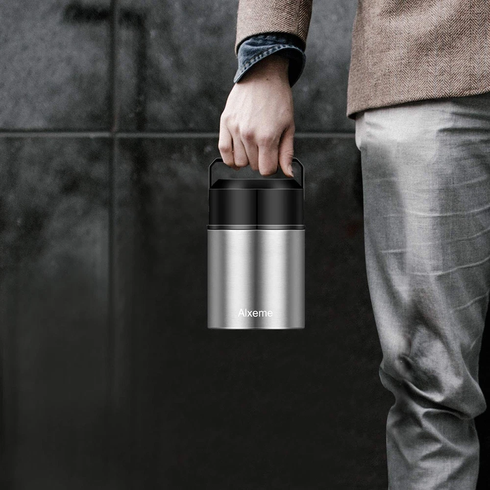 Vacuum Insulated Food Jar for School/ Office/Travel/ Outdoor Activities Why choose our insulated food jar : ✔Every food jar supplied by uses seamless welding technology to effectively improve the insulation effect. ✔The Double wall 304 18/8 stainless steel vacuum insulated technology can effectively eliminate the convection process. ✔Double lids design for enhance insulation & leakproof. Outer lids can be used as a bowl, perfect for kids’ lunch. ✔Big capacity for addressing hunger. The 27 oz big size also enough for 2 small appetite people. ✔With convenient folding spoon & firmly handle. That would be easy to carry & use. ✔The big mouth of the food jar makes you easier to clean, you can easily reach the bottom of the food container. How to use the food jar? 1. For maximum thermal efficiency, you are suggested to preheat(Using hot water)/pre-chill(Using cold water) the food jar before use for about 3 minutes and then empty water. And then you could fill contents to your container. 2. Press the air button before opening the food jar, and be careful the exhausted hot steam. Product Specifications: Size: 4.4inch X 4.4inch X 6.5inch Capacity: 27oz Weight: 0.55kg/1.2lb Material: PP、 food grade silicone、food grade 304 stainless steel All of the parts are food grade material, BPA Free, no PVC. please feel relieved about usage. Package Contents: Insulation Body X 1 Folding Spoon X 1 Inner Lid X 1 Outer Lid X 1 User Manual X 1 Vacuum Insulated & Seamless Welding Technology: Double wall vacuum insulation technology and seamless welding technology for maximum temperature retention keep food hot for more than 6 hours or keep food cold for 24 hours. Portable & Convenient Food Jar: The outer lid with a telescopic handle is very convenient for people to take it out to travel, picnic, work or school. Moreover, the outer lid is made of food grade pp material, it can also place food. 3.4 INCH Wide Mouth & Sturdy Folding Spoon: The wide mouth design with spoon of the food jar make you easy to fill and eat and quick cleaning. Meanwhile, it has 27 oz big capacity, no worry for hungry. Leak Proof Design: We only choose high quality stainless steel inner lid and silicone sealing ring, so that the food container would improve insulation effect and prevent spilling accidents. The stainless steel inner lid bring better insulation. High Quality : The Insulated food jar is made of premium quality 304 stainless steel (BPA Free, Non-Toxic, No PVC).This food jar has full size folding stainless steel spoon that you can use on any occasion. We promise service, please do not hesitate to contact us for help.