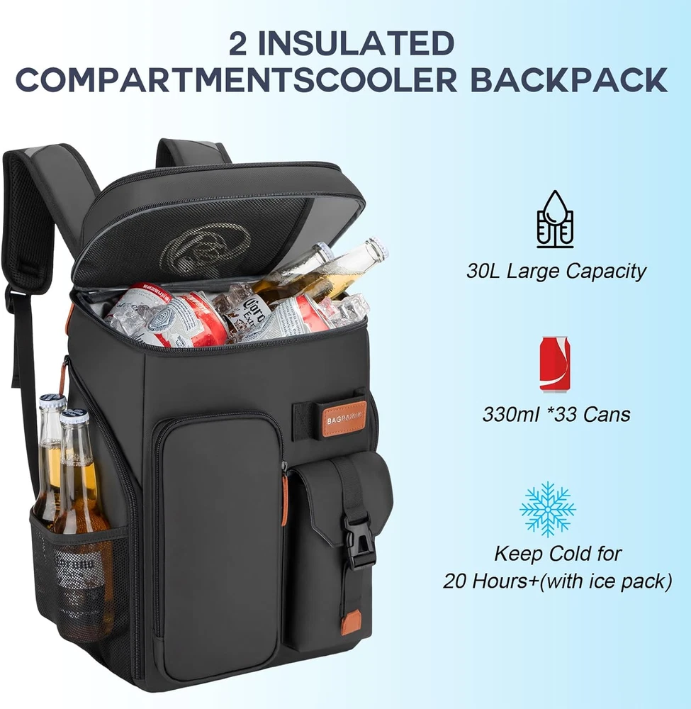 Insulated Cooler Backpack for 33-45 Cans Leakproof Double Deck Outdoor Picnic Camping