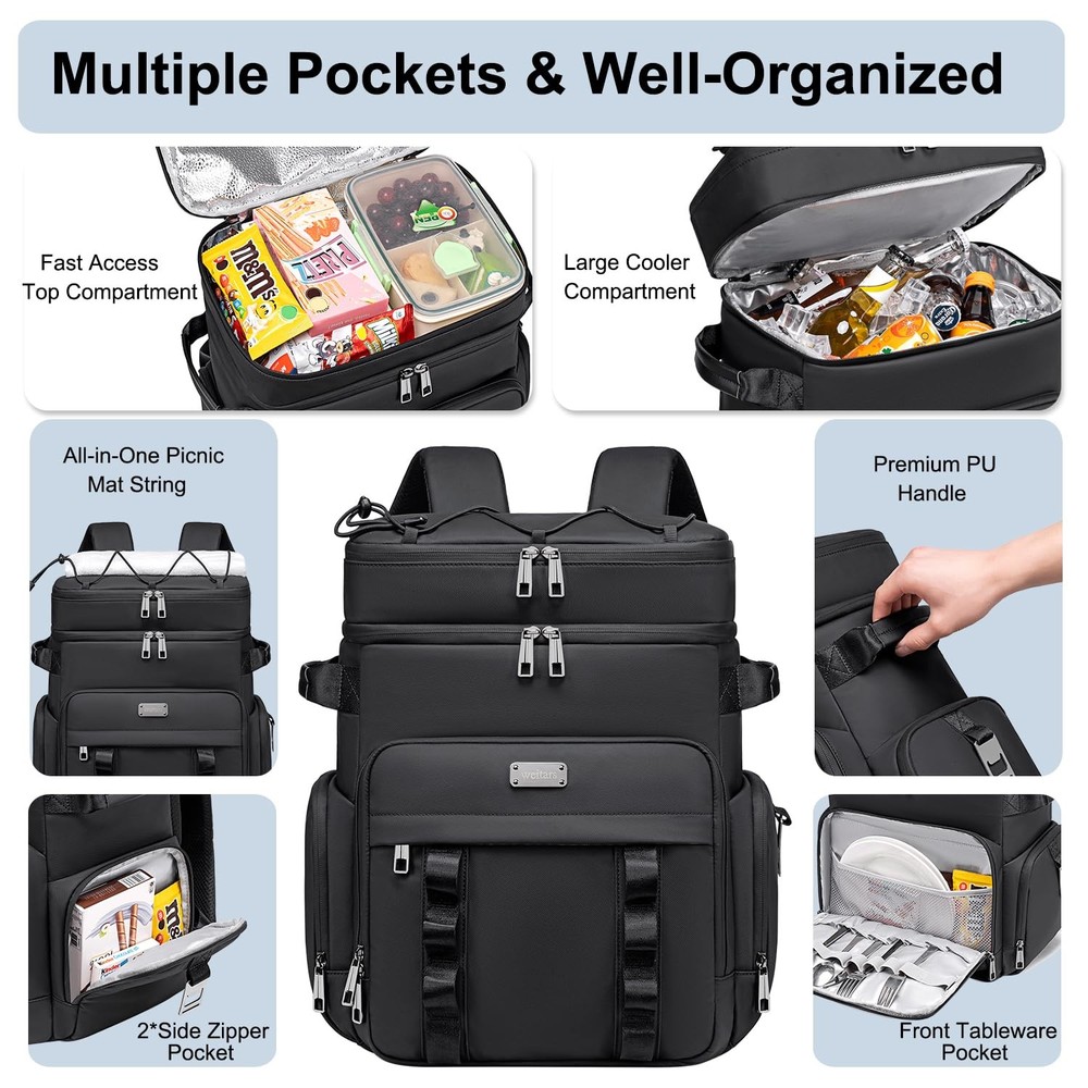 Insulated Cooler Backpack with Double Deck Waterproof Design for Picnics and Travel