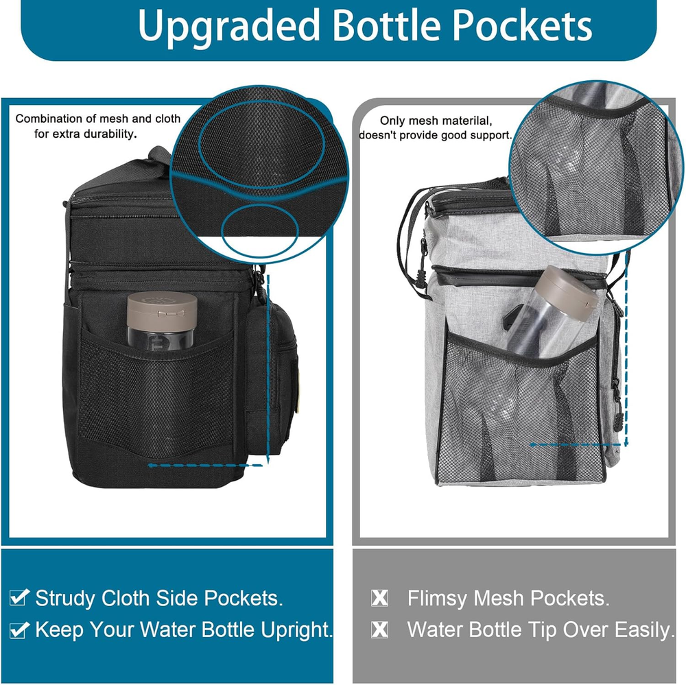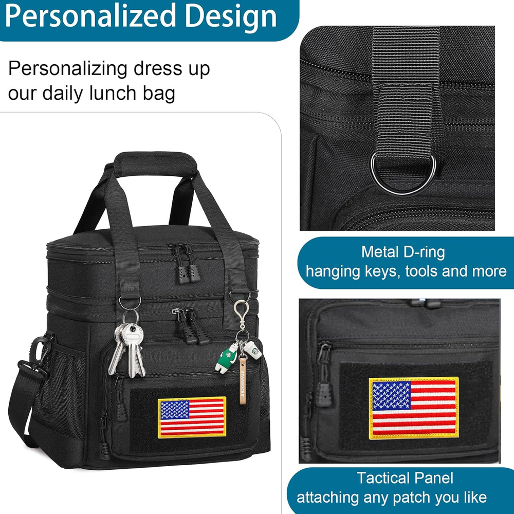 Large Capacity with Expandable Design: Fits 20 Cans of soda(350ml). Dual Compartments for different uses, the top compartment of the women lunch box is expandable, increasing the capacity by 4L. Normal size with 12L. Handy to use for work, outing, picnic, camping, road trip, and so on Better Insulation Performance: 6mm thick insulation liner helps keep your food cold or warm at the right temperature for up to 8 hours. Foods that need to be kept separate from wet and dry can be stored in the top and bottom compartments Water-Resistant & Leakproof: The outer fabric is made from durable water-resistant and wear-resistant material, protecting your lunch and stuff inside from little water or rain. Our large lunch bags can bear weight up to 10kg. Thickened lining and the one-peace heat-pressed process ensure against leaks and are easy to clean Tactical Style & Multi-Use: A large velcro patch on the front you can add a patch to personalize your lunchbox. 5 Versatile pockets on the side designed for storing cellphone, portable charger, wallet, keys, card, tissue, bottle, drinks, and more. 2 Metal Hanging Buckle for attaching keys, cosmetic and other small essentials Versatile Lunch Box: Well-padded shoulder strap and sturdy handles make the large lunch box easy to transport even when fully loaded. GLENKEY heavy duty lunch cooler bag is a spacious, comfortable lunch cooler Product Description MULTICOLORS Customer Reviews 4.6 out of 5 stars 1,106 4.6 out of 5 stars 3,482 4.6 out of 5 stars 3,482 4.6 out of 5 stars 3,482 4.6 out of 5 stars 3,482 4.6 out of 5 stars 3,482 4.6 out of 5 stars 1,106 Price $26.99 $ 26 . 99 $24.99 $ 24 . 99 $25.99 $ 25 . 99 $29.99 $ 29 . 99 $29.99 $ 29 . 99 $28.99 $ 28 . 99 $25.64 $ 25 . 64 Capacity 16L 16L 16L 16L 16L 16L 16L Leakproof Yes Yes Yes Yes Yes Yes Yes Insulated Yes Yes Yes Yes Yes Yes Yes Shoulder strap Yes Yes Yes Yes Yes Yes Yes Design for Camping/Beach/Outdoor Work/Picnic/Hiking Hiking/Beach/Work Picnic/Beach/BBQ Outdoor/Picnic/Beach Work/Picnic/Hiking Hiking/Beach/Trips