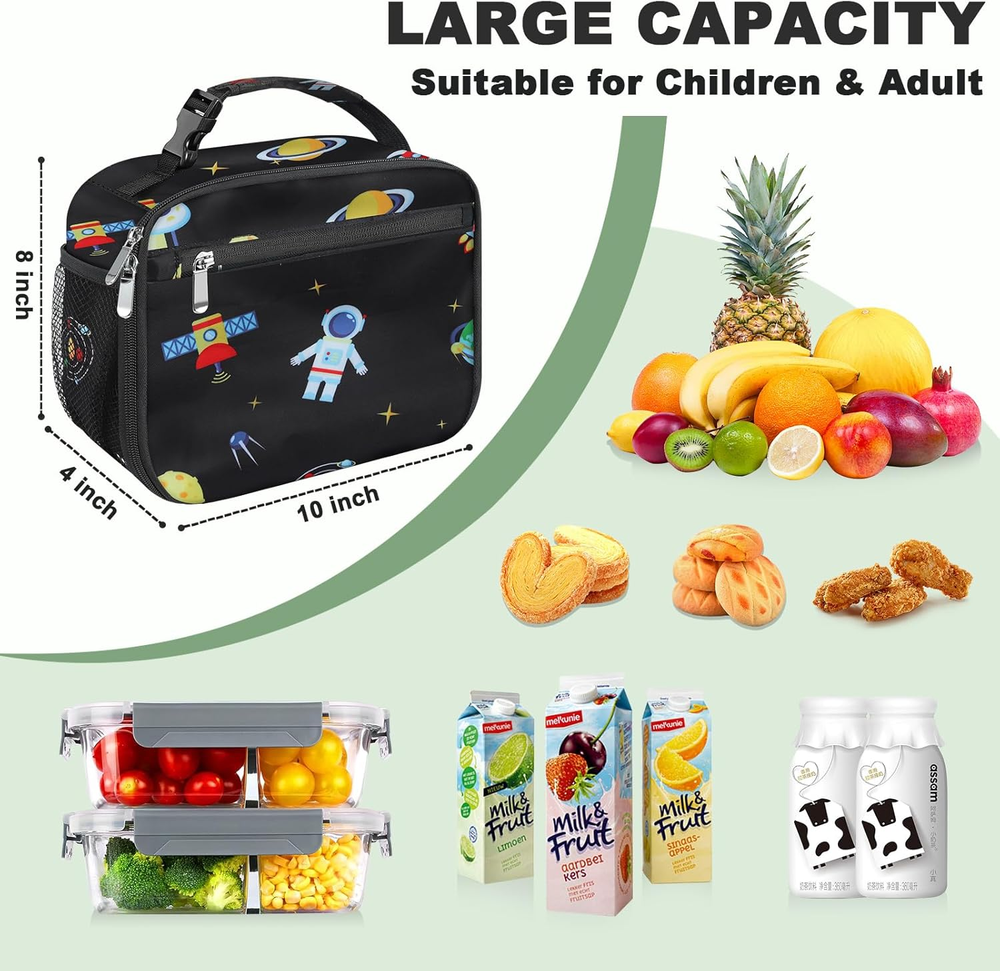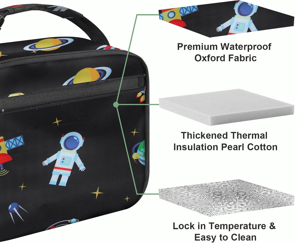 This lunch box is perfect for school—durable, lightweight, and keeps food fresh! The fun astronaut design makes my kid excited to pack lunch, and the insulated lining works great. Easy to clean and just the right size for snacks and a meal. Highly recommend!