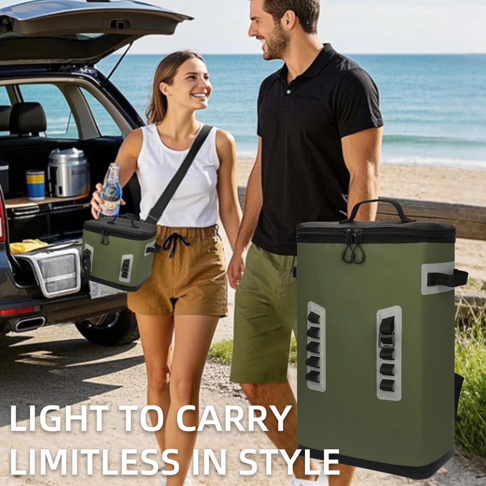 Stay Cool Anywhere, Anytime! Whether you're heading to the beach, camping in the wilderness, or enjoying a weekend BBQ, our insulated soft cooler bags keep your drinks and food ice-cold for up to 48 hours—just like a portable freezer! Designed for convenience and durability, these coolers come in multiple sizes (6, 12, 18, 24, and 28 cans) to fit every adventure. 48-Hour Ice Retention Thanks to 1-inch ultra-thick insulation walls, your beverages stay refreshingly cold for two full days, even in hot weather. No more warm drinks—just perfectly chilled refreshments whenever you need them! 100% Leakproof & Heavy-Duty Construction Made with premium TPU material and high-frequency welding technology, these coolers are completely spill-proof, so you can toss them in your car, boat, or backpack without worrying about leaks. Ergonomic Designs for Easy Carrying 6 & 12 Cans: Compact handheld coolers with sturdy straps for quick grab-and-go convenience. 18 & 24 Cans: Single-shoulder designs with adjustable straps for balanced weight distribution. 28 Cans: Backpack-style with breathable mesh padding & adjustable straps, making it effortless to carry heavy loads—even when fully loaded with ice and drinks! Multi-Scene Versatility Perfect for camping, fishing, beach trips, road trips, picnics, tailgating, and festivals, these coolers adapt to any adventure. Lightweight yet spacious, they’re the ideal companion for outdoor lovers. Easy to Clean & Durable The waterproof, wipe-clean interior resists stains and odors, while the rugged exterior stands up to rough handling. When empty, the soft-sided design folds flat for compact storage. Choose Your Perfect Cooler: 6 & 12 Cans: Great for solo outings or small gatherings. 18 & 24 Cans: Ideal for day trips and group adventures. 28 Cans: The ultimate high-capacity cooler backpack for extended excursions. Upgrade Your Cooling Game—Order Yours Today! Soft Cooler 48-Hour Ice Retention – Your Portable Freezer Anywhere: Equipped with 1-inch ultra-thick insulation walls, this backpack cooler maintains ice-cold temperatures for up to 48 hours—perfect for camping, beach trips, fishing, and outdoor adventures. Never worry about warm drinks again! 100% Leakproof & Rugged TPU Construction: Crafted with high-grade TPU material and high-frequency welding technology, this cooler backpack is completely spill-proof, ensuring no leaks even when tilted or carried roughly. Keep your gear dry and secure! Heavy-Duty Yet Comfortable – Holds 28 Cans with Ease: The ergonomic backpack design evenly distributes weight, while breathable mesh padding and adjustable shoulder straps provide maximum comfort—even when fully loaded with 28 cans + ice packs. No more sore shoulders! Multi-Scene Versatility: Ideal for hiking, tailgating, road trips, festivals, and beach outings, Soft Cooler spacious yet lightweight cooler backpack keeps your food and drinks chilled wherever you go. Durable, Portable & Easy to Clean: Soft Cooler Unlike bulky hard coolers, this soft-sided cooler backpack is easy to carry and store. The waterproof, wipe-clean interior makes maintenance effortless—just pack, chill, and enjoy your adventure!