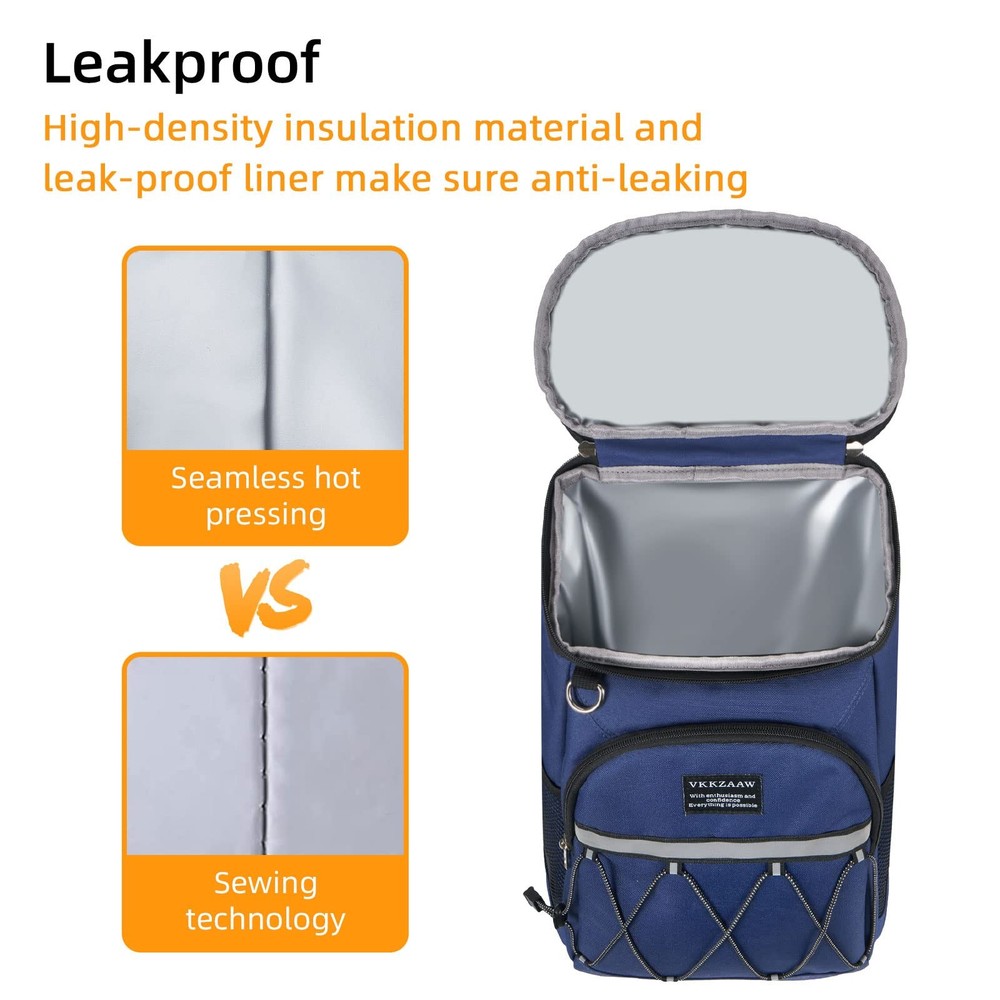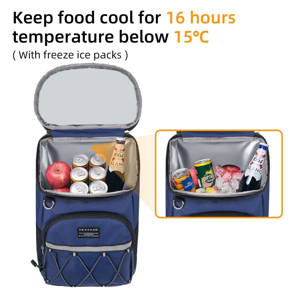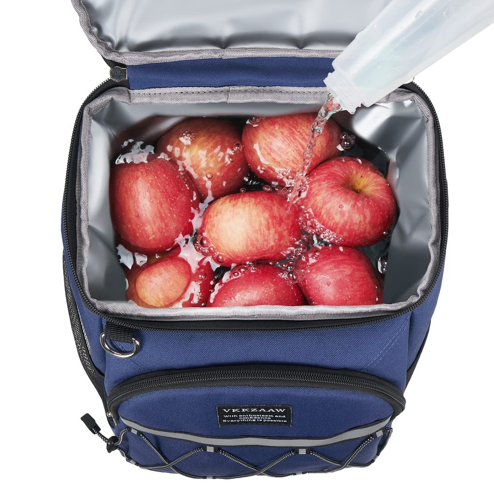 Weight: 1.15 Pounds Brand: Vkkzaaw Size: 10.23 X 7.68 X 14.57" Pattern: Navy Blue Recommended Uses For Product: Camping, Fishing, Hiking, Picnic, Lunch, Beach, Park Container Type: Bag Import Designation: Imported Package Dimensions LxWxH: 10.24x7.8x4.13 Inches Color: Blue Capacity: 18.0 UPC: Does not apply Insulation Material: Polyethylene Type: Does not apply Care Instructions: Hand Wash Only gtin13: Does not apply Model Name: Vkk-Cooler-22-03B Shell Type: Soft Shell