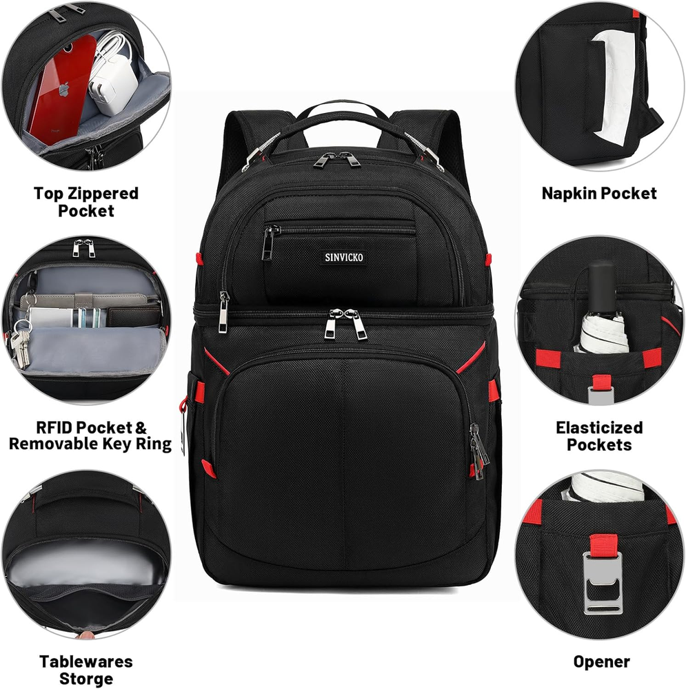 1. This cooler backpack is a game-changer! The double-deck design keeps food and drinks perfectly chilled for hours, and the leakproof liner gives peace of mind. The sturdy 1680D material holds up well, and the insulation works great for both hot and cold items. Super convenient for picnics, beach trips, or work lunches—super spacious and comfortable to carry. Highly recommend!
