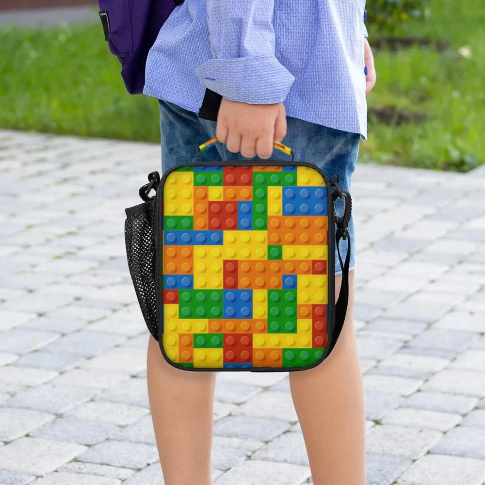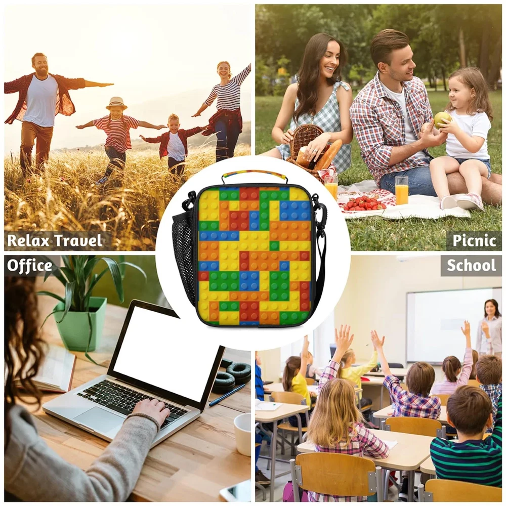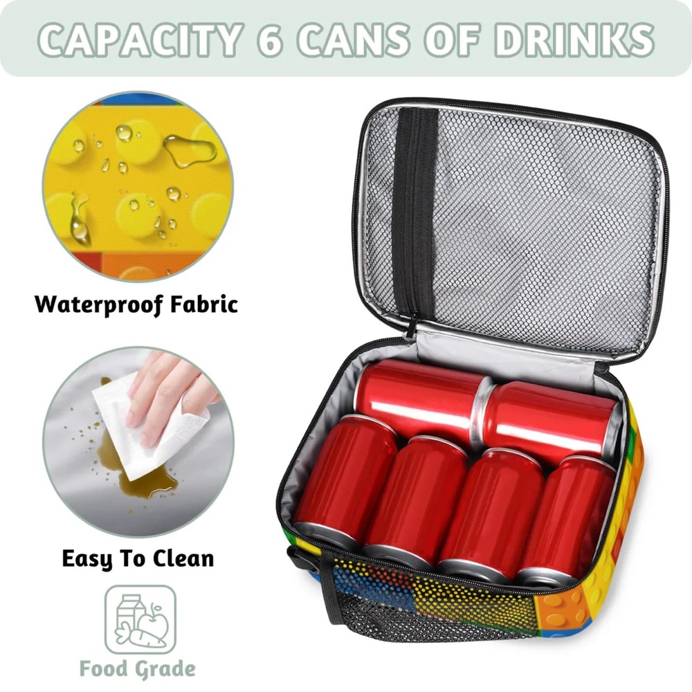 Lunch Boxes Bags for Kids Make Lunch Time Easy and Fun! Material: Waterproof polyester Size: 10.4 x 8.4 x 3.15 inches Closure: Double zipper closure Portable: Top handle/adjustable detachable shoulder strap Easy to Clean: Just wipe it off Structure: Main pocket, Interior zippered mesh pocket, side mesh pocket Dual Zipper: Made of high quality smooth double zipper, don't worry that the zipper will be easily damaged. The double zipper design makes it easy to open and close. Practical Side Pocket: Our lunch box has a mesh side pocket for extra storage of umbrellas, cutlery, water bottles and other items. Adjustable Shoulder Strap: The high quality buckle allows you to adjust the shoulder strap to the most comfortable length. Detachable buckle handle, easy to carry, which can attach to your backpack, enabling you to carry the lunch bag in different ways! Fun & Stylish Designs: Available in a variety of vibrant colors and patterns, this lunch bag is sure to match your child’s personality. Bold and fun playful prints, there’s a design for every taste! Practical Leak-proof Lunch Boxes: If you are looking for a kind of thermal insulation bag, and want your family to eat hot food and fresh fruit, you should be interested in our lunch bag. Our thermal insulation bag can not only keep you warm in the cold winter, but also refrigerate in the hot summer. It also has shock absorption effect, and can keep food cold / hot / fresh in a few hours! 【Insulated Lunch Bag】Our lunch coolers bag made with premium waterproof and insulated materials, this lunch box organizer keeps food at the perfect temperature for hours. Whether it's a warm meal or a cool snack, your child's lunch will stay fresh until it's time to eat 【Lightweight & Easy to Carry】The size of this bento box bag is 10.4 x 8.4 x 3.15 inches, designed with kids in mind, this lunch boxes is lightweight and easy to carry, making it perfect for school, picnics, or family outings. The adjustable shoulder strap and top handle provide multiple carrying options for added convenience 【Travel Friendly Design】lunch box for boy has a large main pocket with an internal zippered mesh pocket that can easily fit sandwiches, snacks, drinks, cutlery, etc.; there is a mesh pocket on the side that can hold a water bottle or paper towels, etc., for easy access; it provides plenty of space for lunch. Despite its large capacity, it is compact enough to fit easily into a backpack or handbag 【Easy to Clean】Reusable lunch snack bags has a high quality waterproof and leak-proof lining, easy to clean, just wipe it with a damp cloth. Withstand daily use, perfect for kids lunch tote bags 【Versatile Applications】Multi-functional lunch bag, fit for many occasions, these lunch bags can be used as shopping bag, picnic bag, sundry bag, food bags, suitable for men women adult kids ,teen girls. Perfect for many outdoor activities, such as work, office, school, hiking, picni, travel, fishing, etc.