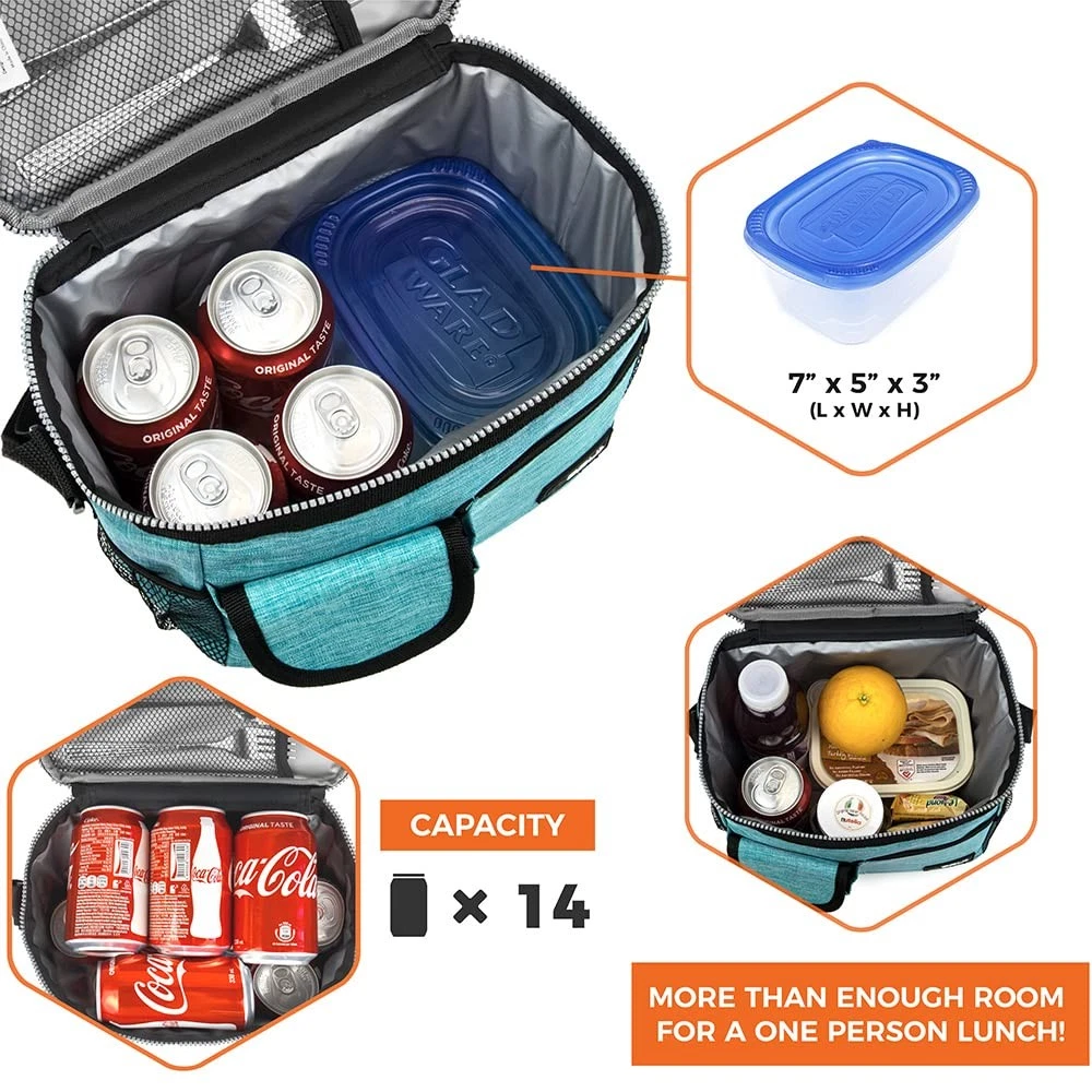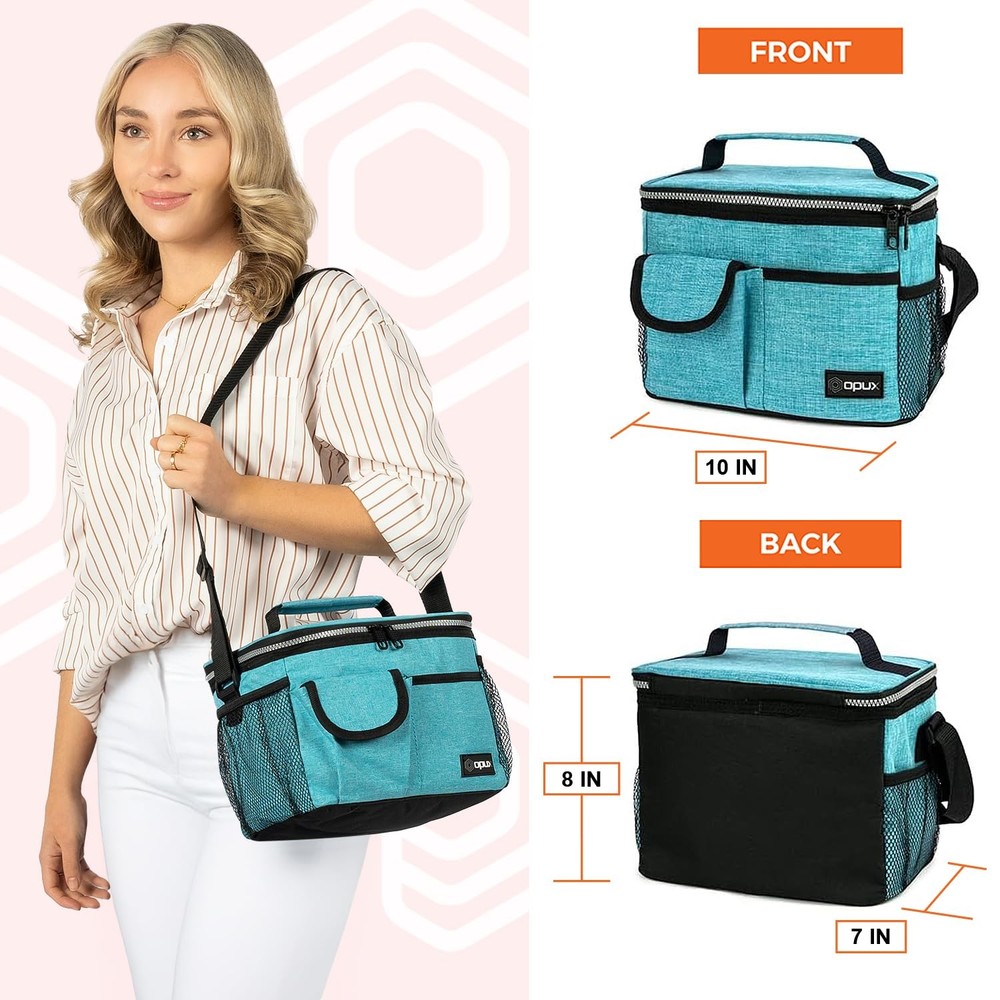 Medium Capacity Lunch Box with Shoulder Straps and Pockets This durable, functional, and easy to use Premium Lunch Bag is perfect for you to taking food with you to a picnic, the beach, traveling on a road trip, and to sporting games. Equipped with adjustable straps and reinforced dual zippers, this insulated lunch cooler is able to be carried in different ways! Easy to carry on your shoulder or hand held. Shoulder strap is adjustable and can be extended up to 48" Equipped with 2 front pockets and 2 mesh pockets for storing bottles, utensils, napkins and more. Dual reinforced zippers for easy opening and maximum durability. Sizes: Medium measures 10" x 7" x 8" (L x W x H), 14 Can Capacity | Tall measures 10 x 8 x 9.5 (L x W x H), 18 Can Capacity creates quality products for your many lifestyles Our Vision To provide premium kitchen and wine products that greatly simplifies your life. We will continue to innovate and bring exciting products to market so you can achieve more in life! Our Products At , we offer an extensive line of kitchen tools (such as salt & pepper mills, coffee accessories), lunch bags, and wine bags/accessories made of highest quality for all occasions. Our products are meticulously designed with materials and functions that truly simplify your life so you can focus on creating your favorite meals or entertaining your guests. INSULATED LUNCH BOX FOR WORK: This medium lunch cooler bag measured as 10 x 7 x 7.75 inch, holding up to 14 cans of soda or 8L of food. lunchbox fits large meals, meal preps, bento boxes, making this leakproof insulated lunch box a lunch supply essentials for adults, men, women, kids, teens, boys, and girls. LEAKPROOF LUNCH BAG: The mens lunch bag for work features a food-grade PEVA lining that is leakproof and easy to clean. The thick thermal foam insulation ensures your food stays hot or cold for hours. Stay organized with our portable cooler bag that keeps meals fresh and containers secure. This soft cooler lunch box is great for taking to school, office, work, and gym. MULTI-POCKET & PORTABLE: Our lunch bag for working women men features an adjustable shoulder strap that allows you to carry it comfortably to school, office, or picnic. The lunch cooler, lunchbox for adults includes side mesh bottle holders and front pocket to store utensils, napkins, and lunch essentials. The dual zippers ensure easy opening and closing of the lunch pail. EASY TO CARE & DURABLE: Our lunchbag is crafted from heavy duty 600D Oxford polyester that prevents rips and tears, ensuring long-lasting durability. Whether you're an adult or student, our reusable lunch bag lunchbox can handle it all. Simply wipe it with a damp cloth to keep it clean and fresh. Thick soft material protects your food during travel.. BLUE LUNCH BAG FOR ALL: Our sea blue lunch box is perfect for carrying meals to work, school, hiking, and picnics. The insulated cooler bag is leakproof with vibrant color options, making our cooler lunch bag ideal for adults, men, women, kids, teens, boys, and girls. Passed CPSIA Lead, CSPA Phthalates & Cadmium Test - Manufacturer recommended age: Ages 3+.