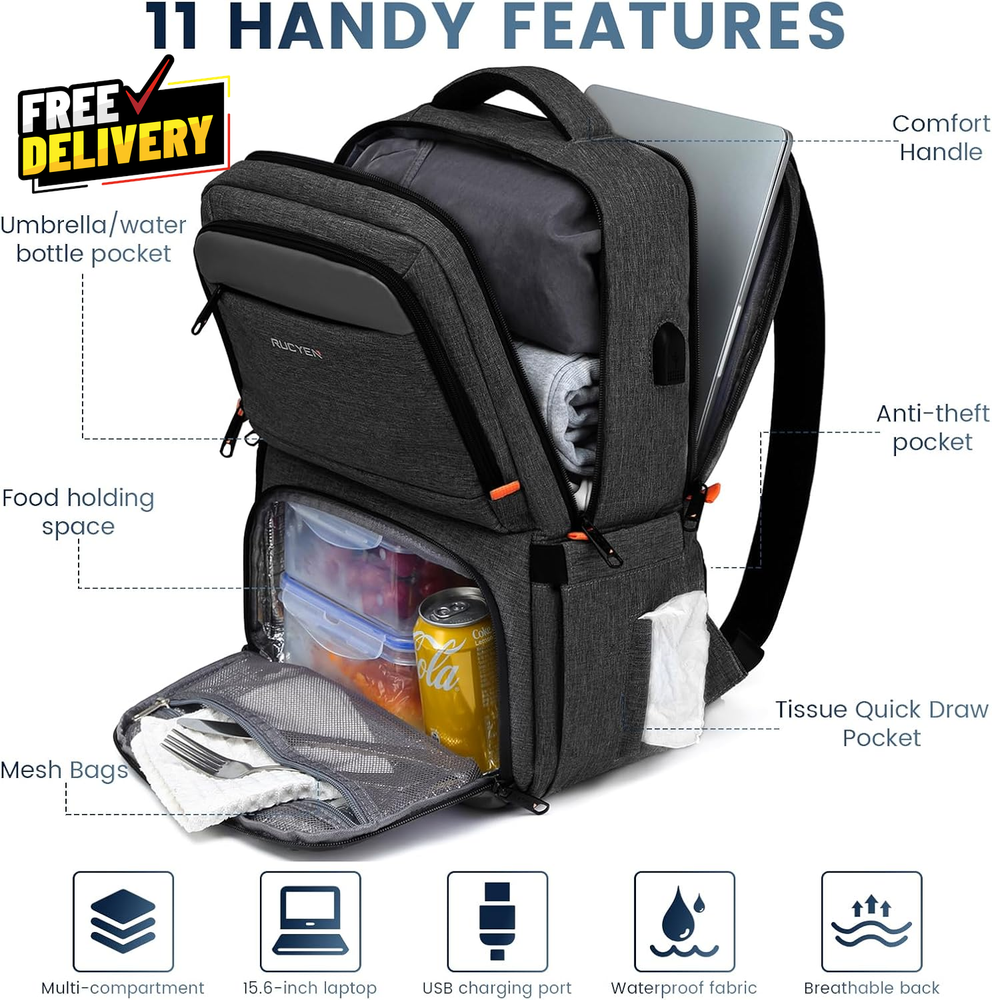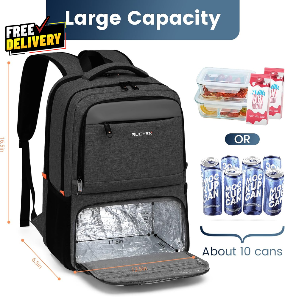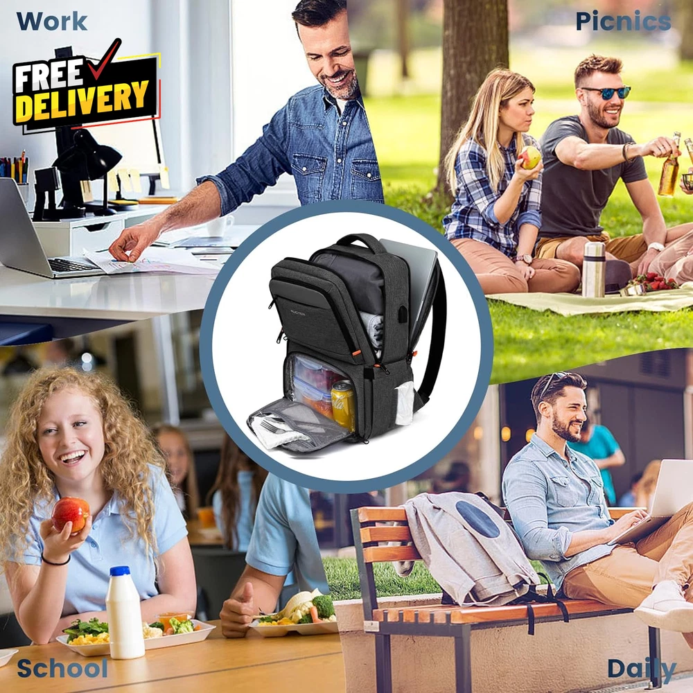 This lunch backpack is a game-changer! The insulation keeps my food fresh and drinks cold for hours, and the leakproof design gives me peace of mind. It fits my 15.6-inch laptop perfectly, making it ideal for work or weekend trips. The stylish look works for any occasion, and the easy-to-clean material is a huge plus. Highly recommend for anyone who needs a practical and versatile bag!