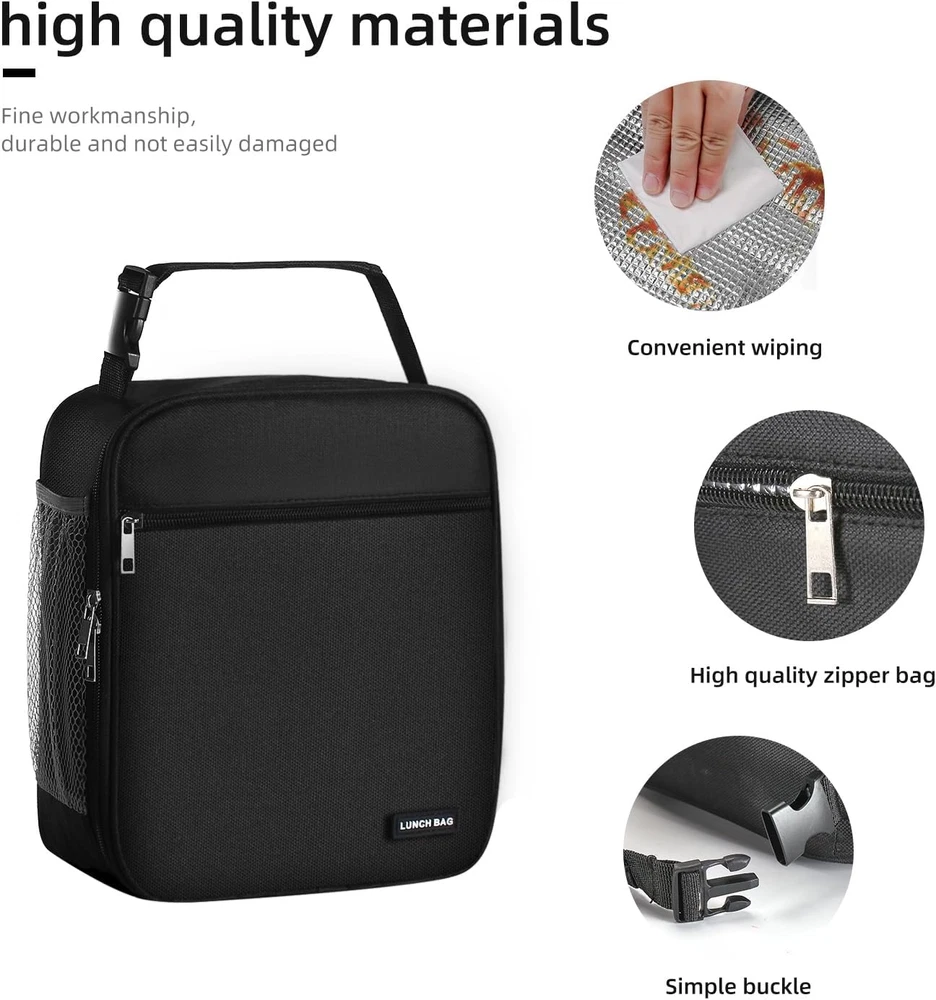 FOR YOU Lunch Box Lunch Bag for Men Women Insulated Lunchbox Lunch Bags for Work Picnic Travel (Black) FEATURES 【Large capacity Lunchbox】Lunch box dimensions:10.63in*9.06in*3.54in.You can put down your lunch boxes, fruits, snacks, drinks, breads and so on.It will fulfill your meal needs for the whole day 【Portability】Lunch bagLunch bag features: lightweight and easy to carry.Thickened handles with removable clasp, not only can you carry it, but also can hang it on your backpack, briefcase, travel bag and so on 【Lunch bag】Insulated lunch bag exterior made of fine polyester fabrics,Strong toughness, not easy to break.The inside of the lunch bag is made of multiple layers of thickened insulated aluminum foil, which not only keeps you warm and fresh, but also cold.Most importantly,it easily to clean 【Multi-functional】The lunch bag has a grid on the side for drinks, umbrellas, mugs and more. The front has a large pocket for your cell phone, coin purse, cards, keys, etc. Smooth zippers make for a great experience 【Location】Lunch bags are suit for a variety of venues for a variety of people. Ideal for picnics, camping, work, regular use and more Product Description Lunch bag Size:10.63in*9.06in*3.54in Features:Waterproof,wipe and easy to clean Location:Picnics, camping, work, regular use and more Portability:lightweight and easy to carry.Thickened handles with removable clasp Multi-functional Large capacity:Holds oversized lunchboxes and drinks Item model number lunch bag-1 Closure Type Clip Style Casual Number of Compartments 1 Capacity 6 ounces Number of Items 1 Unit Count 1 Count Color Black Item Form Bag Brand Lovoeo Material Polyester Country of Origin China Shape Rectangular Item Weight 0.35 Pounds Theme Food Age Range (Description) Adult Recommended Uses For Product Picnic, Camping, Regular use Special Feature Lightweight Product Dimensions 3.54"D x 9.06"W x 3.54"H Product Care Instructions Hand Wash Only Included Components Bag 9.06 "h x 3.54 "h x 3.54 "h. Weight: 0.35 lb PAYMENT We accept all payments via Ebay using Credit Cards , PAYPAL , Apple Pay and many others SHIPPING We are always working hard to ensure your package arrives as soon as possible. Please understand that some factors like weather, high postal traffic, and the performance of shipping companies are outside of our control. DELIVERY & RETURN POLICY We offer a 30-Day Return Policy on items in which you are not completely satisfied with. You have the option of a full-refund or an exchange of the item. No returns are available on items shipped outside of the USA.