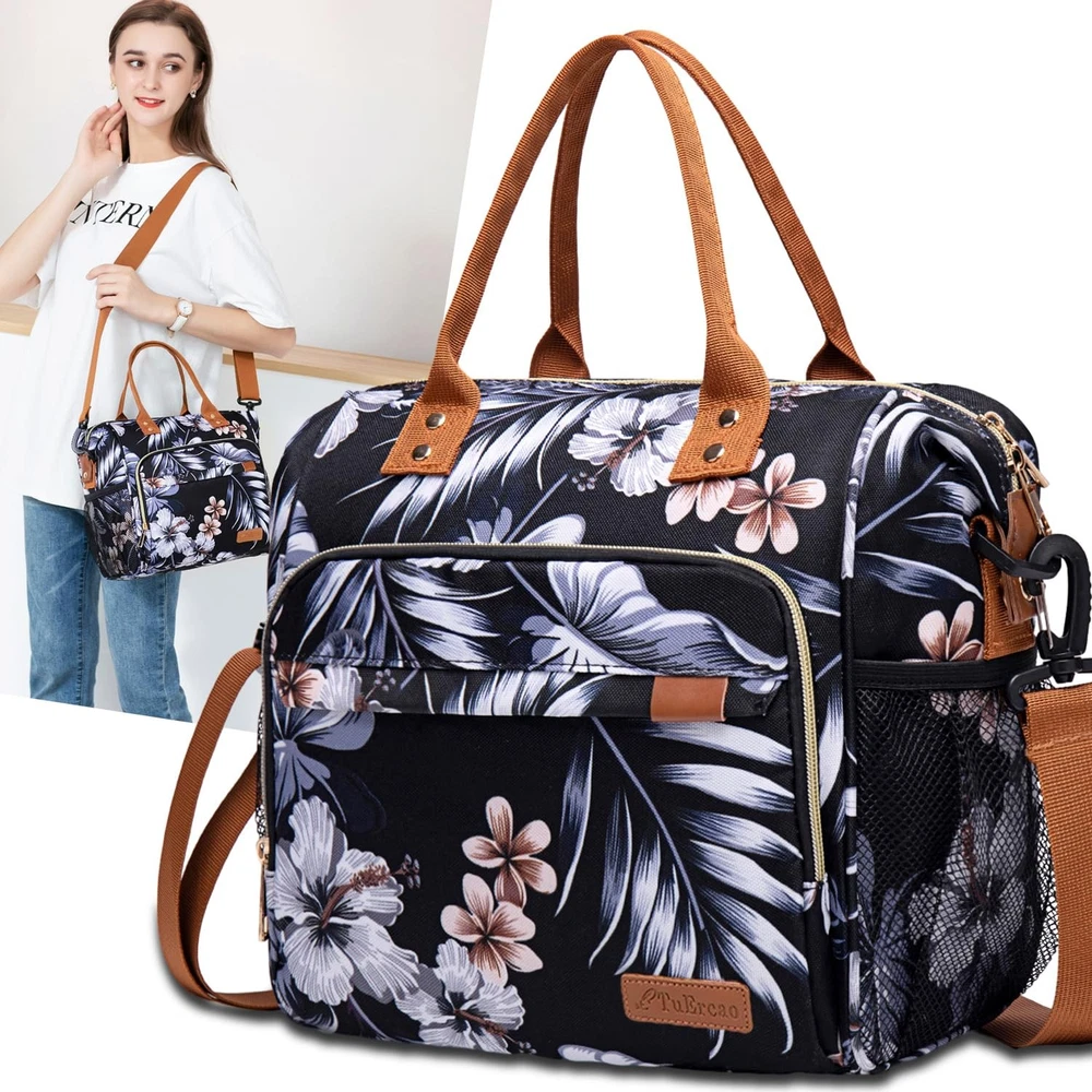 MULTIPLE POCKETS: TuErcao insulated lunch bag: 1, Features one main zippered compartment to keep your food and fruits warm or fresh. 2, The front zipper pocket great for your headphones, data cable. 3, The velcro pocket suitable for holding cutlery or your snacks. 4, The back privacy zippered pocket is for your necessities like keys, credit cards, and small change. 5, Two mesh pockets are for drinks, beer, cola, water bottles, shoulder strap or tissues LEAKPROOF & THERMAL INSULATED: TuErcao reusable lunch bags are equipped with waterproof ethylene vinyl acetate lining, which is soft, leakproof, and easy to clean. Padded with 6mm EPE foam and 900d polyester & composite tarpaulin outer fabric will keep your food fresh or warm when you're on the go DIMENSIONS & CAPACITY: TuErcao lunch bag dimensions are 10.25" x 6.3" x 10.5" (L x W x H). The main compartment has large capacity and can fit 16 cans 330ml colas. It can hold all of your food like sandwiches, salad, snacks, drinks, and fruits for the entire day PORTABLE & CONVENIENCE: TuErcao insulated lunch box features one reinforced handle on top for carrying as a handbag or tote bag. And comes with a detachable & adjustable shoulder strap which can be adjusted from 15" to 27" for carrying as a shoulder bag or crossbody bag DURABLE MATERIALS: Premium reinforced metal dual zippers, secure zipper closure, and sturdy buckle ensure smooth open and maximum durability. Our Insulated lunch box follows a strict set of specifications and quality standards WIDE USAGE: This lunch bag can use as a cooler bag, small ice chest, tote bag, work bag, travel bag, picnic bag, beach bag, sundry bag, food delivery bag, reusable grocery bags, reusable shopping bags. This insulated lunch tote is perfect for a family time, house warming, birthday party, picnic and more