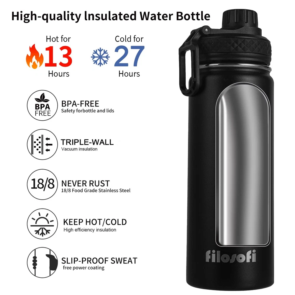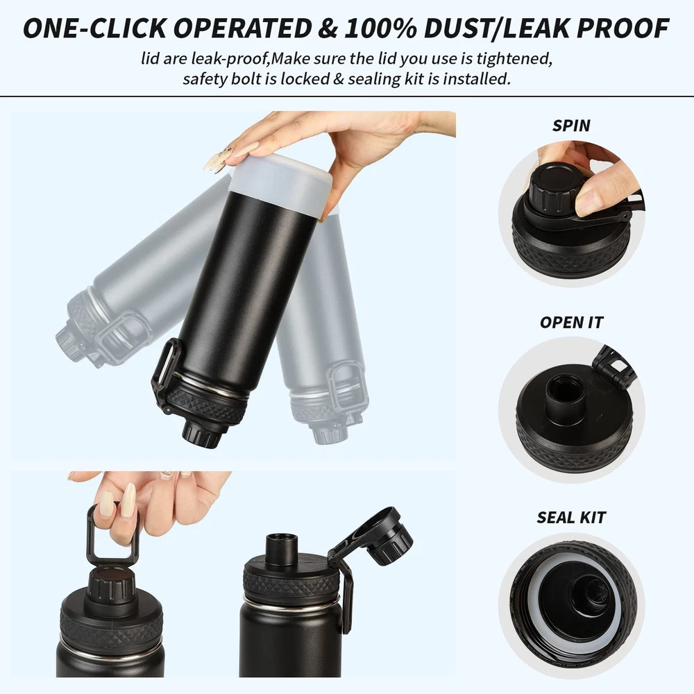 Stainless steel kettle accompanies you to every corner of the world. 24 hours customer service, ensure product quality,offer a refund or replacement if not satisfied. Better Insulation-Stainless steel water bottle uses a new generation of three-wall vacuum insulation technology for better insulation, keeping it hot for 13 hours and cold for 27 hours. Premium Stainless Steel-Water bottle is made of high quality 18/8 stainless steel,free of BPA and other odors, environmentally friendly and healthy, suitable for children and adults. Additional Protection-Bottom of the water bottle is prone to accidental scraping and bumping,the high quality silicone cover provides better protection for the sports water bottle. Fashion appearance-Advanced powder coating,make the appearance color become more colorful, not easy to drop paint.Leak-proof lid with handle ring for easy carrying.