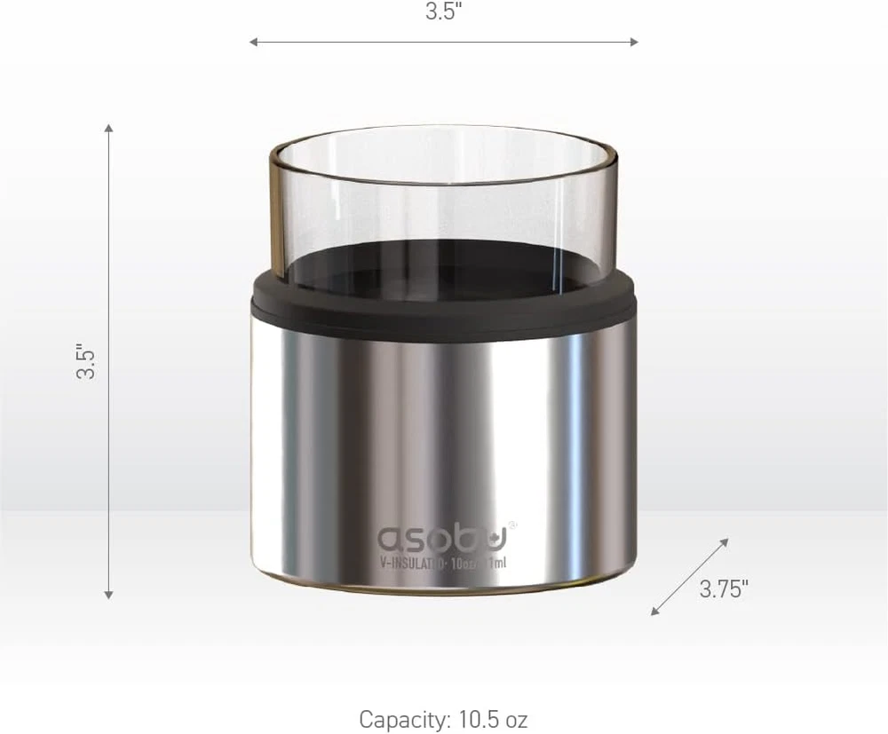 NO MORE WARM WHISKEY - Keep your hands warm and your whiskey cold with our insulated stainless sleeve for your whiskey glass STAINLESS STEEL INSULATED - Our sleeve is designed to keep your whiskey chilled until the last drop without the taste of a stainless steel cup SECURE RUBBER BAND - The band on top keeps your whiskey glass secure in the insulating sleeve DOUBLE WALLED - Chill your whiskey not your hands with the double walls that protect your whiskey INDOOR OR OUTDOOR - Great for use indoors and durable enough for backyard, poolside or BBQ parties Product Description Double Walled Insulation Chill your whiskey not your hands with the double walls that protects your whiskey Premium Glass Includes a quality old fashion whiskey sized glass Condensation Free Sleeve Keep your hands dry and your whiskey cold with the condensation free insulated stainless sleeve. Removable Sleeve The sleeve easily removes from the glass for easy cleaning and storing No more watered down, melted ice whiskey Indoors or outdoors your whiskey will stay cold and pure! Preserve the taste of your beverage Great for use with any cocktail - Enjoy the pure taste of you cocktail in a stainless steel insulated cup! Asobu Bar Collection Add to Cart Add to Cart Customer Reviews 4.7 out of 5 stars 2,505 3.4 out of 5 stars 20 4.7 out of 5 stars 5,193 4.3 out of 5 stars 86 4.1 out of 5 stars 54 Price $21.90 $ 21 . 90 — $29.99 $ 29 . 99 — — Double Walled Vacuum Insulated ✔ ✔ ✔ ✔ ✔ Capacity 10.5 Ounces 17 Ounce N/A 16 Ounces 15 Ounces No flavor transfer glass ✔ ✔ ✔ ✔ ✔ No outer condensation ✔ ✔ ✔ ✔ ✔ Glass Included ✔ ✘ ✘ ✔ ✔