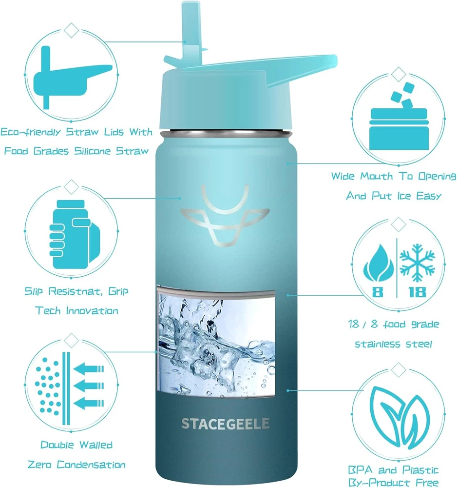 Store New Arrivals Add to Favorite View Feedback Contact Insulated Vacuum Water Bottle for Kids with Straw Lid Stainless Steel Flask Thermos for Boys and Girls Leak Proof Lightweight Eco Friendly 18Oz(550Ml), Hush Description Capacity 550 Milliliters Number of Items 1 Number of pieces 1 Country of Origin China Is Oven Safe No Theme Food With Lid Yes Is Microwaveable No Batteries required No Product Dimensions 3.1"W x 8.2"H Material Stainless Steel Age Range (Description) Kid Included Components Straw Brush, Straw Item Weight 9.3 ounces Special Feature Lightweight Color Hush Cap Type Straw Cap Recommended Uses For Product Water Base Diameter 75 Millimeters Product Care Instructions Hand Wash Only Size 18.6 Ounces 【18/8 FOOD GRADE STAINLESS STEEL】 double walled and vacuum insulated, which keeps your favorite beverage hot at least for 8 hours or cold for 18 hours, Tips:Not for use with very hot liquids, pressure problem will causing leaks or spills . 【WIDE MOUTH WITH ECO-FRIENDILY STRAW LIDS】 Mouth is wide enough for ice cubes and easy cleaning, Also each STACEGEELE insulated bottle comes with BPA FREE straw lid ,and each straw lid with soft silicon pad, perfect for kids’ drinking habits, make your kids drink happily. 【NEVER SWEAT】Double walled design stainless steel vacuum insulation and powder coated bottle body make sure it never sweat and 100% nontoxic and safe. 【SPECIAL GIFTS】When you buy 1 STACEGEELE insulated bottles , you could get 1pc transparent straw, 1pc colorful straw ,1set of sticker and 1pc straw brush as gifts . Product Description ABOUT US We offer the best prices around on high quality products. Our E-store includes media such as books, movies, music and games while offering electronics, toys, sporting apparel, clothing, tools, general home, garden items and more. SHIPPING We are always working hard to ensure your package arrives as soon as possible. Please understand that some factors like weather, high postal traffic, and the performance of shipping companies are outside of our control. We offer free shipping to the lower 48 states and ship within 2 business days of payment, usually sooner. We do not accept P.O. Boxes. Please provide a physical address. For shipping outside of the continental USA, we only use eBay's Global Shipping Program.The item is shipped to KY and then sent to the rest of the world. International customers are responsible for all duties and taxes. Continue to check out in order to calculate costs for shipping the item to your country. Messages regarding eBay's Global Shipping Program MUST be directed at eBay EXCLUSIVELY. RETURNS We offer a 30-Day Return Policy on items which you are not completely satisfied with. You have the option for a full-refund or an exchange of the item. No returns are available on items shipped outside of the USA. PAYMENT We accept PayPal. CONTACT US This page content is yet to come Please ad us to your favorite seller and visit again later Thank You CUSTOMER SATISFACTION We try our very best to make sure every customer is completely satisfied. If there's a problem, message us! We're happy to help. WE ACCEPT Copyright © 2021 AutoDS. | All Rights Reserved