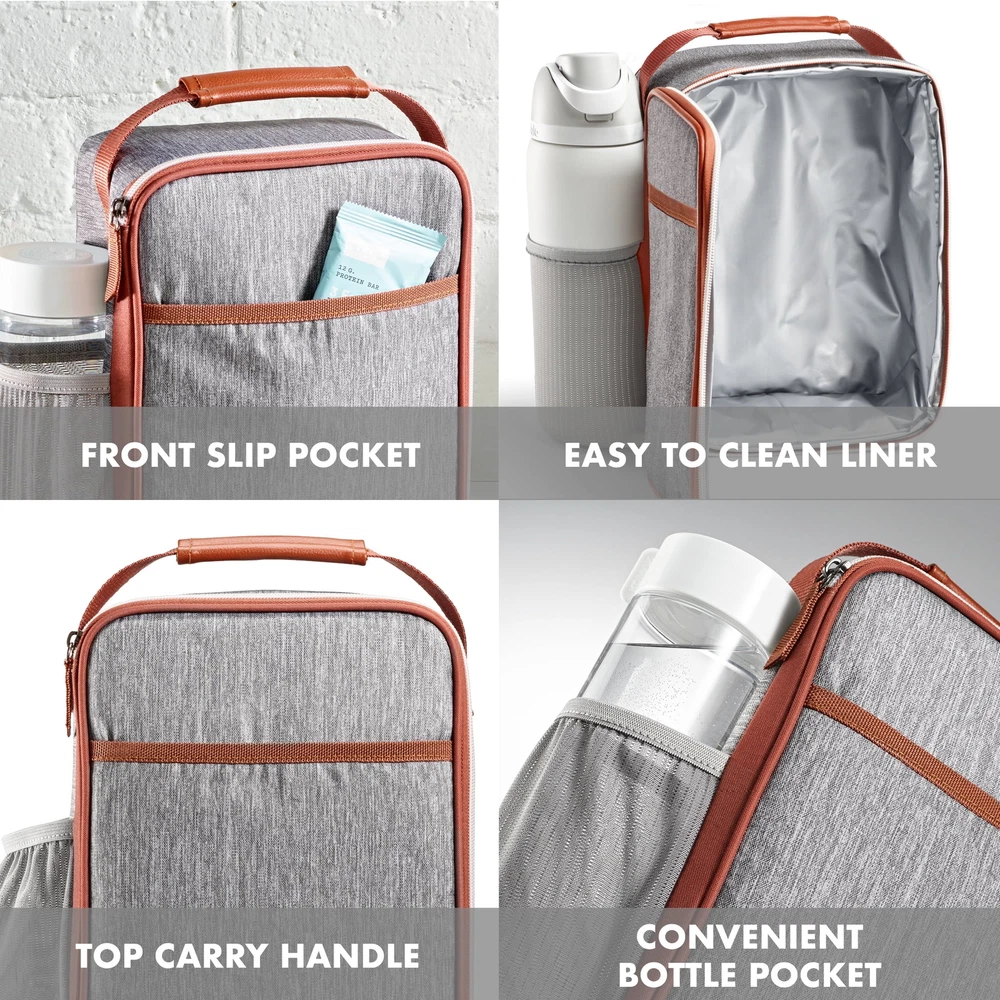 The Acorn St by Fit & Fresh lunch bag features a traditional vertical design with compact dimensions, high-quality thermal insulation , and an easy-to-clean interior liner . It has an exterior slip pocket for essentials and a comfortable top carry handle . The bag also includes an expandable side water bottle pocket , providing ample space for a well-balanced meal. Its insulation keeps food fresh for hours, and the interior can be wiped clean with a damp cloth. The bag is suitable for men, women, and kids, offering a convenient and practical solution for daily meals on-the-go. The Acorn St by Fit & Fresh lunch bag features a traditional vertical design with compact dimensions, high-quality thermal insulation , and an easy-to-clean interior liner . It has an exterior slip pocket for essentials and a comfortable top carry handle . The bag also includes an expandable side water bottle pocket , providing ample space for a well-balanced meal. Its insulation keeps food fresh for hours, and the interior can be wiped clean with a damp cloth. The bag is suitable for men, women, and kids, offering a convenient and practical solution for daily meals on-the-go. This Acorn St lunch bag is an unbeatable option for anyone looking for a who needs a classy way to carry their lunch—guys, girls, kids, you name it! This traditional vertical style lunch box is spacious enough to fit all your food for the day, while compact enough to fit in a tote bag or backpack. Its thick, quality insulation keeps your meals fresh for hours. Keep things extra cool by using an ice pack! The interior lining is easy to wipe clean with a damp cloth. No more worrying about spills on the go. Whether you’re headed to the office, bouncing around campus, or on the lookout for an awesome spot to lower your kickstand to take in lunch with a view, this bag provides plenty of space for a well-balanced meal. Comfortably carry all day with the durable top handle. Secure any accessories like your phone, keys, or slim wallet in the front slip pocket. Pack your drink in the convenient side bottle pocket. A must-have lunch bag for men, women, and kids! Traditional vertical lunch bag style, compact design High quality thermal insulation keeps cool for hours Interior liner is easy to clean with a damp cloth Easy-access, exterior slip pocket for your essentials like a phone, keys or wallet Comfortable top carry handle Expandable, side water bottle pocket On Jul 9, 2025 at 01:22:16 PDT, seller added the following information: