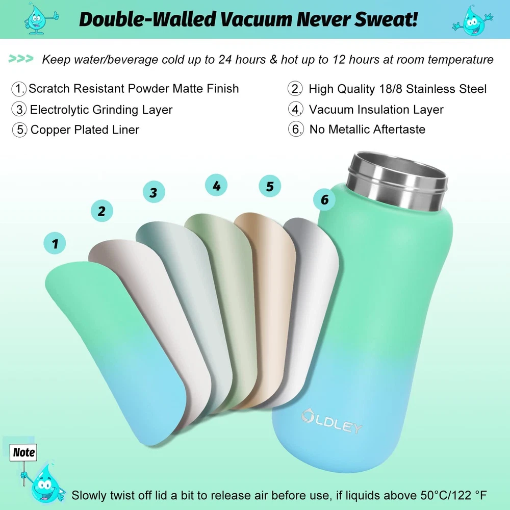 【By 】: We provide a for all the lids. Any lids can be requested for a new no matter if you do not like them or defective reason. Please us through the platform if any questions, we will be at your service anytime. 【Food-Materials】Our insulated water bottle is made of 18/8 Stainless steel that is 100% non-/Rust free/Odor free/slip-resistant. Perfectly vacuum sealed with double wall insulation, our water bottle can keep beverages cold or hot for a long time. 【2 Different Lids】The bottle mouth is wide to fit ice cubes and is easy to clean. Comes with a smooth flow straw lid & a fast flow chug lid, which are dust-proof & and designed with a secure lock/seal ring, the bottle is 100% leak-proof. can simply open with hand and enjoy spill-proof sipping. 【Convenient to Carry】Unique Bottle body is designed with a small curvature for to hold. Fits with most school bag/car cup holders/bike cages, easy to take anywhere. Besides, the straw lid is designed with a nylon handle; the chug lid has a built-in finger loop attached. Perfect for school, camping, biking & so on. 【Dishwasher Safe】Our metal water bottles can be easily cleaned by hand or in a dishwasher, ensuring effortless and convenient maintenance. Please note that the lid should not be placed in the dishwasher.