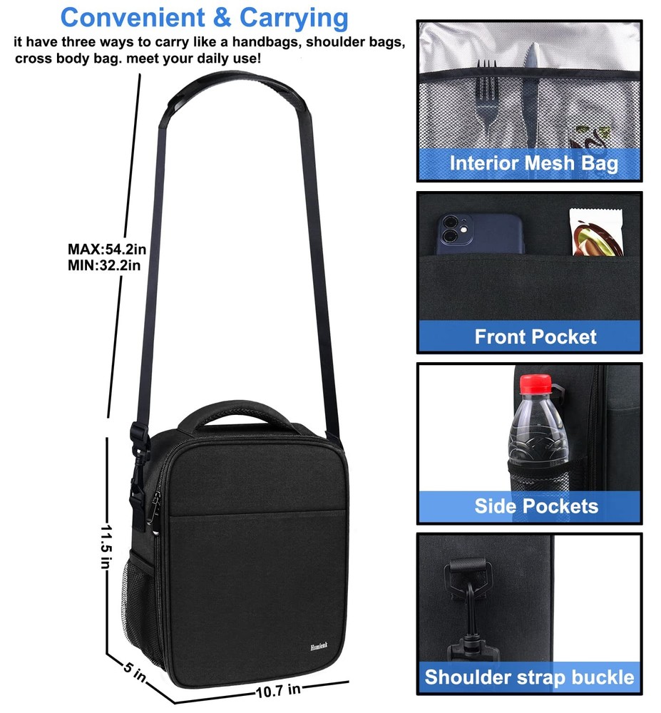 Lunch Bag, Lunch Box, Large Lunch Bag for Women Men. THIS ITEM IS NOT INTENDED FOR USE BY CHILDREN 12 AND UNDER. π Super Large Capacity: The men lunch bag, large dimension (10.7" L x 5" W x 11.5" H ), the main compartment is super large capacity and the adult lunch box can fit 16 can bottles of 330ml drinks. it can fit all of your food like sandwich, salad, snacks, drinks and fruits for the entire day. THIS ITEM IS NOT INTENDED FOR USE BY CHILDREN 12 AND UNDER. π Insulated Lunch Bag: Men lunch bag equipped with premium thermal aluminum lining that is bpa and pvc free, which can maintain the temperature and freshness of the food. it can keep the cold drink cold and keep the food hot and fresh when you go out. you can also enjoy delicious and fresh food. π Additional Pockets: The inside mesh pocket of our reusable lunch bag is suitable for storing knives, forks and spoons. the outside has a front pocket for storing napkins, keys, mobile phones, change, cards and other small items. it also has a side elastic mesh bag for holding drinks and water bottles. which is very convenient for daily use and becomes a must-have for work, office and travel. π Durable Lunch Bag: Lunch bag is made of is made of high-quality fiber fabric, surface is spill-resistant, if soup, rain, dirty water spill on the surface of the lunch bag, you can wipe it up with tissue or towel, protect the lunch bag from being soiled. easy to clean, resistant to abrasion, and a double zipper design. THIS ITEM IS NOT INTENDED FOR USE BY CHILDREN 12 AND UNDER. π Convenient & Carrying: Insulated lunch bag features one reinforced handle on top and comes with a removable and adjustable shoulder strap which can be adjusted from 16"" to 28"" when carrying offer you more carrying options. it have three ways to carry like a handbags, shoulder bags, cross body bag. meet your daily use! π Good Helper For Travel: This unisex tote bag is lightweight, compact and portable, this lunch pale could easily carry your favorite lunch at work, office, while traveling, camping with your family, fishing with your pals, while boating, and hiking, enjoying a romantic picnic in the park, open air music festivals, sports, and bbq sundays! THIS ITEM IS NOT INTENDED FOR USE BY CHILDREN 12 AND UNDER. THIS ITEM IS NOT INTENDED FOR USE BY CHILDREN 12 AND UNDER.