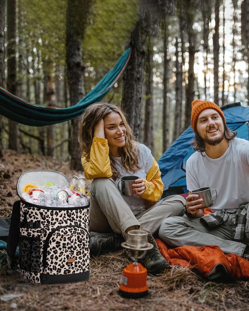 insulated cooler backpack keeps food and drinks hot or cold for up to 16 hours. Featuring a leakproof, food-grade liner and multiple compartments for easy organization, it's perfect for lunch, hiking, camping, fishing, or travel. Lightweight, comfortable, and designed for both men and women. Weight: 1.32 lbs Material: Upgrade Insulated & Leak-proof & Waterproof Cooler Backpack Size: 12.6 x 8.9 x 3.3 inch Color: Black/Khaki/Gray/Blue/Cow Print/Leopard/Pink Upgraded Insulation Technology: Our backpack cooler features multi-layered, high-density foam insulation and a food-grade PEVA lining that work together to maintain the temperature of your food and drinks for up to 16 hours. Whether you're packing hot lunches or cold beverages, backpack coolers insulated leak proof performs in all conditions. Enjoy fresh, safe meals and perfectly chilled drinks no matter how long you're out Leakproof Cooler Backpack: Engineered with a durable EPVA liner and seamless hot-pressing construction, this cooler provides 100% leakproof protection. Cooler backpack insulated waterproof prevents liquids from seeping through, even when carrying ice or sauces. Plus, the interior wipes clean in seconds. Keeps your gear dry and eliminates cleanup hassles—so you can focus on fun, not messes Spacious Multi-Compartment Cooler Bag: Features a generously sized main compartment for storing meals and fresh ingredients, a top zipper pocket for keeping dry snacks secure, front utility pockets with elastic cords for utensils or small tools, and 2 mesh side pockets for quick-grab items like water bottles or umbrellas. Ensures your essentials stay neatly organized and within reach with our insulated backpack cooler—eliminating clutter and saving time Ergonomic Comfort for All-Day Wear: Our ice chest backpack ergonomically designed with thick, breathable back padding and wide, adjustable shoulder straps that are cushioned for added comfort and airflow. Even when fully loaded, weight is evenly distributed to reduce pressure. Our backpack coolers offer unmatched comfort for all-day carrying—say goodbye to sore shoulders and sweaty backs Multi-Purpose Insulated Cooler Backpack : More than just a coolers, our lunch backpack is designed for versatility across all your activities—whether hiking rugged trails, lounging at the beach, fishing by the lake, or camping on weekends. Its durable, leakproof construction and thoughtfully organized compartments keep your food and drinks fresh, hot, or cold for hours. Experience unmatched convenience and peace of mind, making every outing more enjoyable and hassle-free.