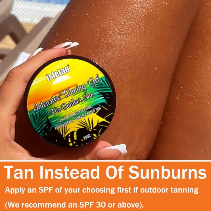 Achieve your natural, darker, long-lasting tan with less exposure to the sun with this intensive tanning gel. This ultra-tanning accelerator contains plant-based oils which effectively providing intense, deep skin hydration and stimulating, increasing melanin formation to accelerate the tanning process. Suitable for outdoor tanning. Quick Results - Specially formulated for outdoor use, this intensive tanning gel helps you develop a rich, natural-looking tan more quickly and evenly. Everything your skin needs is in one jar - 100% natural carrot oil in this natural sun tan gel for sun-ready and strengthened skin, organic coconut oil helps skin stay hydrated while tanning, sunflower oil for a summer golden glow and shea butter for radiant and replenished skin. Tattoo & Color Fade Protector Prolongs the life and radiance of your tattoos and tanning results. Premium combination of this sun tanning butter became popular for ultra dark tan lovers too! Easy to Use & suitable for all skin types - A "must have" works amazingly outdoors which is super effective in the sun. Rub it evenly & Expose yourself to sun rays to aid in skin absorption to have that glow! Regardless of skin type, you can use this product - however, you will achieve the effect if you have olive skin or with a base tan. A prefect choice sun tan enhancer even for people with pale skin. Ultimate Hydration & Skin Firming. People love how our sun tan gel for outdoor sun helps prevent against wrinkles and signs of ageing. Contains coconut oil and botanical extracts that lock in moisture to provide intense, deep skin hydration, all of which are powerful antioxidants, this tan enhancer for sun fights off free radicals, gently nourishes and cleanses your skin leaving it smooth, fresh, luxurious and supple, giving a maximum tanning experience. Natural & Vegan & Cruelty-free. tan accelerator for holiday takes no shortcuts in bringing you the best for your skin. Our products contain only the fine natural, nourishing ingredients loved by every skin type.
