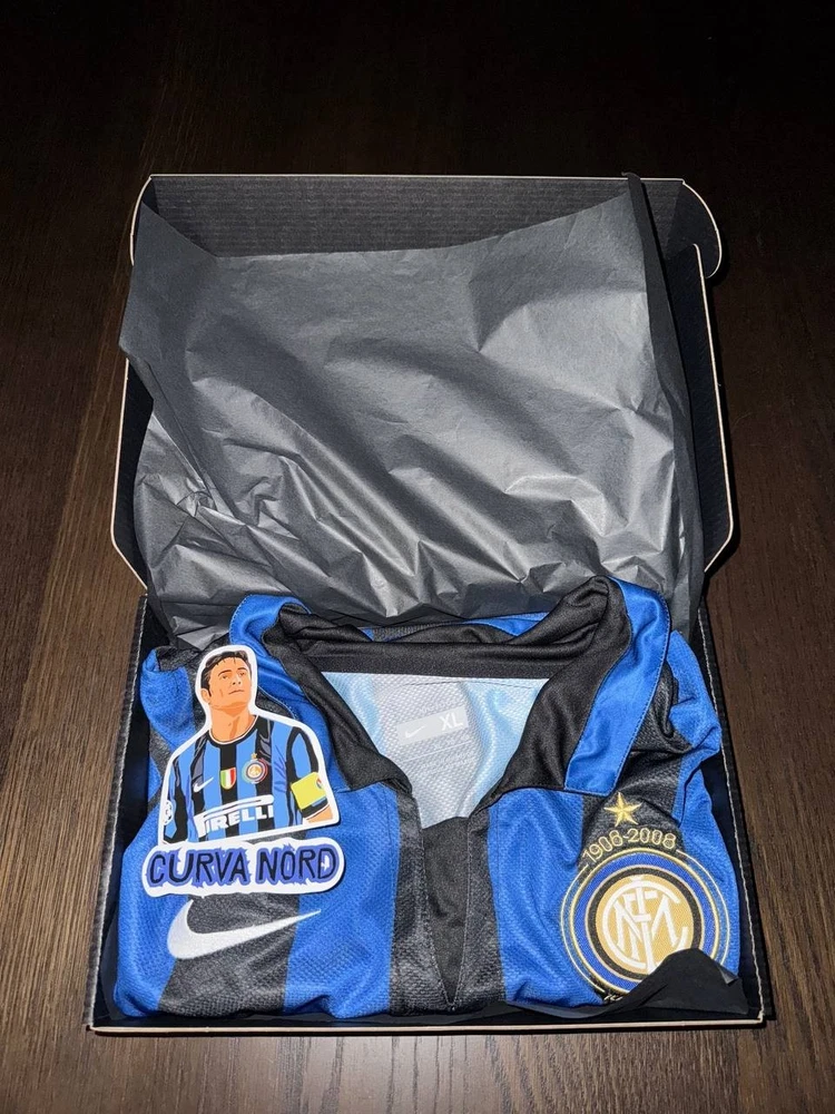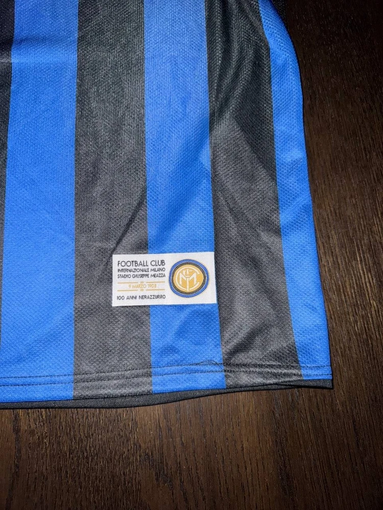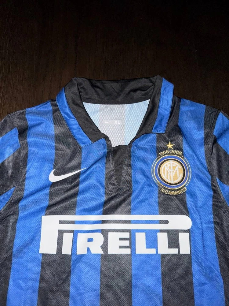 Inter’s home shirt from the 2007/2008 season featuring Swedish superstar Zlatan Ibrahimović on the back. The shirt is available for fitting. Size XL with the following measurements: Waist: 55 cm Chest: 52 cm Length: 71 cm Shoulder width: 44 cm Sleeve length: 25 cm