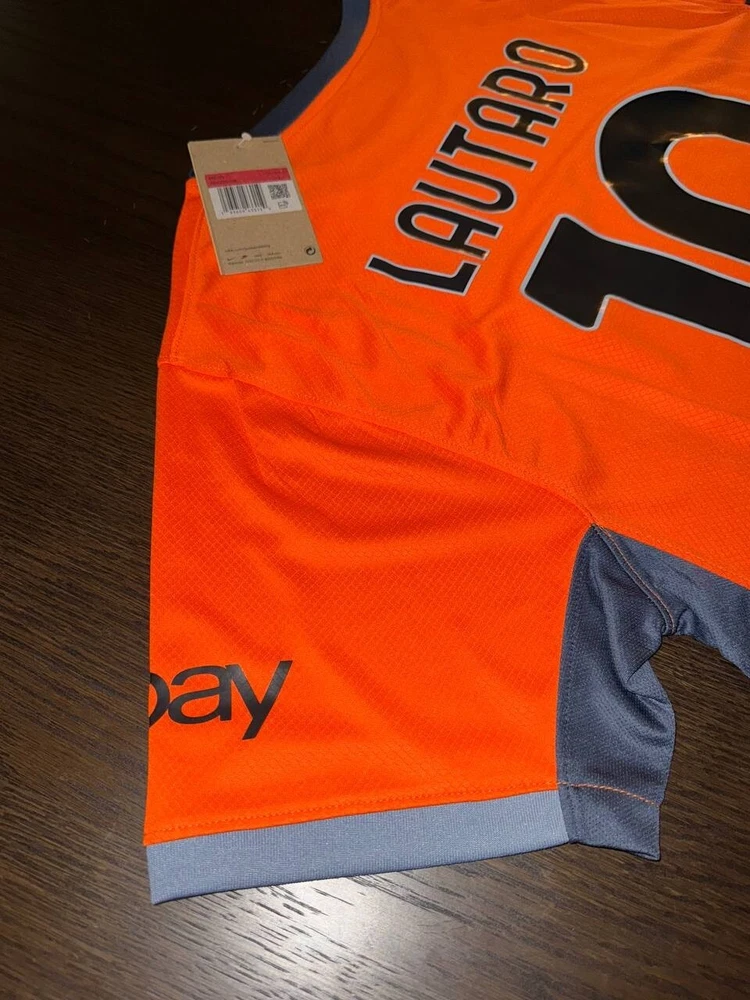 Inter Milan 2023/2024 Third Kit with Lautaro on the back. Size Large with the following measurements: Shoulder dimensions: 46 cm (18 inches) Waist: 52 cm (20,5 inches) Length: 73 cm (28,5 inches) Worldwide Shipping - if you have any questions conatct us through DM and we will look into it.