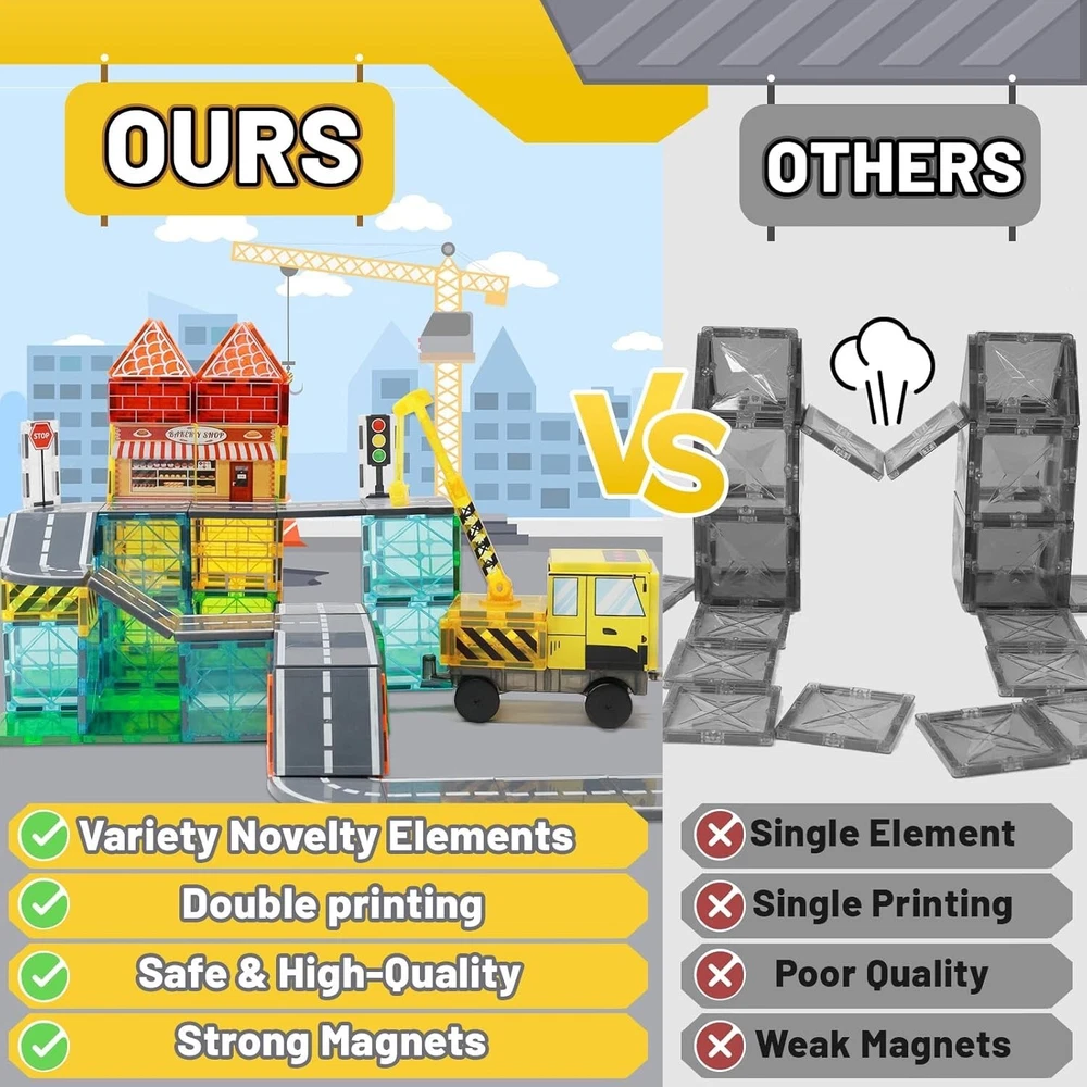 Interactive City Construction Magnetic Blocks - Safe, STEM Toys for Ages 3-12 ‹ › ‹ › ‹ › ‹ › ‹ › ‹ › ‹ › ‹ › ‹ › Interactive City Construction Magnetic Blocks Safe, STEM Toys for Ages 3-12 DUAL THEMEN 2-in-1 SET Introducing the magnet building blocks : an innovative set designed for imaginative young minds. With its double-sided printing featuring engineering vehicles and trains, this dual-themed scene 2-in-1 kit allows children to create a bustling roadside assistance, train station, and dynamic environments. The diverse scene designs spark creativity, guiding children into an exciting city-building adventure. NOVEL ELEMENTS MAGNET BUILDING TILES Includes 70PCS of magnetic tiles, enhancing playtime with endless possibilities. Features 2-in-1 magnetic car heads and roads, along with rotatable and retractable magnetic tile cranes. Engage in play with power car toys, stations, traffic lights, fences, supermarket signs, and construction signs. Children can design their own cities, experiencing the immersive joy of construction, which ignites their imagination and cultivates creativity. SAFETY & COMPATIBLE & STRONG MAGNETISM Your child's safety is our priority. These magnetic tiles are crafted from safe, durable ABS plastic using advanced ultrasonic welding technology. The smooth surface and rounded edges ensure safe playtime. The reinforced magnets secure blocks into desired shapes, and our tiles are fully compatible with major tile brands for blended play experiences. STEM EDUCATION TOYS Our magnetic building toys not only entertain but also educate. Fun traffic signals and warning signs introduce basic traffic rules and road safety, enhancing observation, critical thinking, and hands-on experimentation skills. Encourage patience and problem-solving while nurturing holistic development. IDEAL GIFT Searching for the perfect gift? Look no further! magnet blocks are ideal for birthdays, Christmas, Easter, and Children's Day celebrations. Suitable for ages 3-12, this toy combines play and education, enriching children's thinking, creativity, and spatial imagination. Perfect for home, classroom, or outdoor fun. Embrace adventure and creativity in city building – order the Interactive City Construction Magnetic Blocks today! Shipping Free & Fast Shipping - We offer free shipping to most of the USA with a normal delivery time of 3-7 days. However, due to the current situation, additional delivery time (up to 3 weeks) may be required for some items. Alternative Carriers - We may use alternative carriers (e.g. USPS, FedEx, UPS, etc.) to ensure your package arrives safely and on time. Due to the use of multiple carriers, we are unable to provide a tracking number automatically. Handling Time - Orders are processed and shipped within 1-2 business days of receiving cleared payment. Shipping Restrictions - Shipping to Alaska, Hawaii, Puerto Rico, Guam, and other US territories may incur shipping charges or delivery restrictions. Please contact us before ordering, or your order can be refunded/cancelled. State Restrictions - There may be restrictions based on your state of purchase. For example, certain items may not be shipped to California due to state regulations. Contact for Tracking Updates - If you require tracking updates or have any concerns about the delivery of your order, please feel free to contact us, and we will be happy to assist you. Return Please see our eBay Return Policy. Thank you. Payment We accept all major credit cards, PayPal, and Apple Pay for your convenience. Your payment information is secure and encrypted to ensure a safe and seamless transaction. Please complete your payment within 3 days of purchase to avoid any delays in shipping. Feedback Your feedback is extremely important to us. We strive to provide the best products and customer service possible. If you are satisfied with your purchase, please take a moment to leave us a positive review. If you have any concerns or issues with your order, please contact us before leaving negative feedback. We are committed to resolving any problems and ensuring your satisfaction. Contact Us If you have any questions or concerns, please feel free to reach out to our customer support team. You can contact us through the eBay messaging system. We are available Monday to Friday, 9:00 am to 5:00 pm EST, and we will do our best to respond to your inquiry within 24 hours. Thank you for supporting our small family business! UPC: Not Set Number of Pieces: 70 Item Height: Not Set Item Length: Not Set Item Width: Not Set Set Number: Not Set Theme: Construction Features: Without Box,Dual Theme 2-in-1 Set,New Double-Sided Printing,Engineering Vehicles Theme,Trains Theme,City Highway,Railroad Magnetic Road,Roadside Assistance,Train Station,Dynamic Experiences,Stimulate Imagination,Rotatable Cranes,Retractable Cranes,Highly Maneuverable,Power Car Toys,Traffic Lights,Fences,Walls,Supermarket Signs,Construction Signs Character: Not Set Material: Plastic,ABS Plastic Compatible Brand: Not Set Brand: Unbranded Character Family: Not Set Product Line: Not Set Type: Magnetic Building Set Age Level: 3+ Set Name: Not Set MPN: Not Set Release Year: Not Set Year Manufactured: Not Set Packaging: None Country/Region of Manufacture: Not Set Retired: Not Set