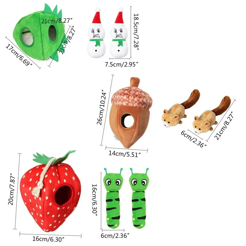 Features: and high ● This are and durable plush materials, which can easily tear when the pet please note: Not applicable to aggressive chewer ● This dog toy plush base, used to hide and find dogs very like playing, for ideal Easter dog Halloween dog Christmas dog ● With the squeaky and 1 durable plush base ● These animals make your dog have a longer, send out what they like. ● Suitable size: large size suitable, small dogs, suitable for most dogs, but attacked chewers Specifications: Short Plush Style1: Christmas snow Style2: nut Style3: Strawberry Size1: Approx.Big for :17x21x21cm/ 6.69x8.26x8.26inch ;Small for : Approx 7x18.5cm/2.75x7.28inch Size2: Approx.Big 14x26cm/5.51x10.23inch; Small for : Approx 6x21cm/2.36x8.26inch Size3: Approx.Big 16x20cm/6.29x7.87inch ;Small for : Approx 6x16cm/2.36x6.29inch Package Includes: 1xPlush Toy note: 1.Please allow 1-2mm errors due to manual measurement, make sure that you do not mind before you order. 2.Due to the difference between different monitors, the picture may not reflect the actual color of the item.