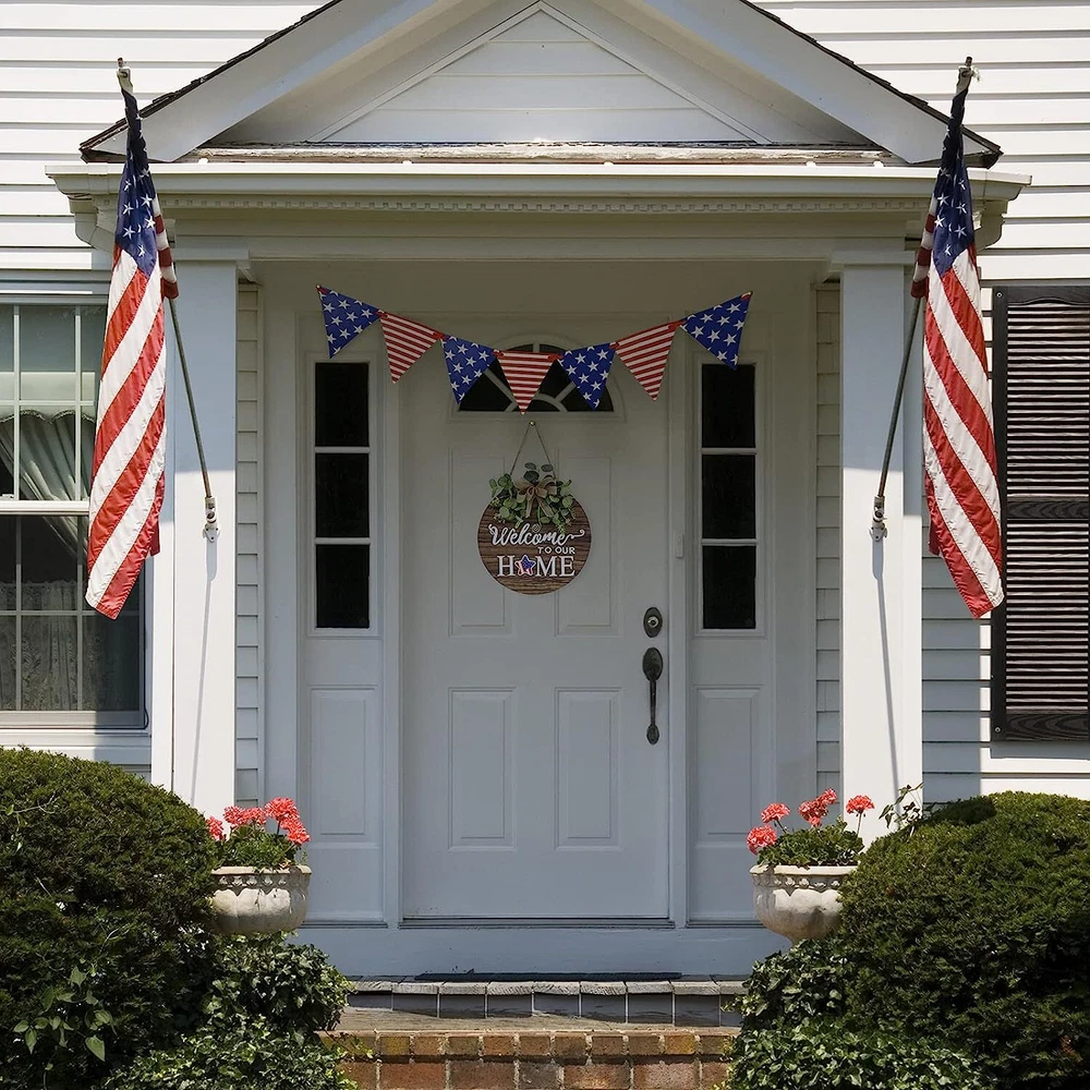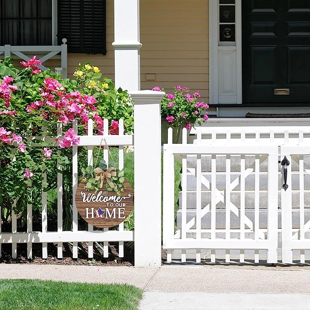DESIGN: Our welcome sign have a history of twelve years, with skilled craftsmanship, durable products, and a variety of colors and texts to choose from. MATERIAL: This round of welcome sign is made of high-quality wooden materials, and high-quality hot-melt glue is used to stick artificial green plants and decorations on the board. Our products give people a beautiful enjoyment. PURPOSE: welcome sign can be used to decorate our living room, room, kitchen, front door of farmhouse, front door of flower shed, beach wooden house, front of coffee shop and Home Decor so on. SIZE: The size is 12 x 12 inches / 30 x 30 cm. This ratio is suitable for most door frame ratios. Make the door frame more story-like. MULTI TOPIC USE:Our front door welcome sign can be a patriotic decorations or ornament to complement other decorations. our wooden wreaths can also be used for Valentines Day, St Patricks Day, Easter, Mother's Day gift, 4th of july decorations, fall decor for home,harvest day, Halloween, Christmas and other festivals. We can switch scenes according to different Holiday and use one thing for many purposes. Product Description Realistic green plants Focused on the detailing of our welcome sign from the greenery to the bows of the wood, we believe detail makes perfect! Pleasant reminder Farmhouse home decoration welcome sign, everywhere, not only decorate the doors and walls of selection, it is in front of the walls welcome all of your friends, family and neighbors excellent choice for the party. The texture of the simulation tree Hanging Vertical for Home decor With rustic color, the welcome wreaths sign for porch door matches modern farmhouse and country themed decorations.