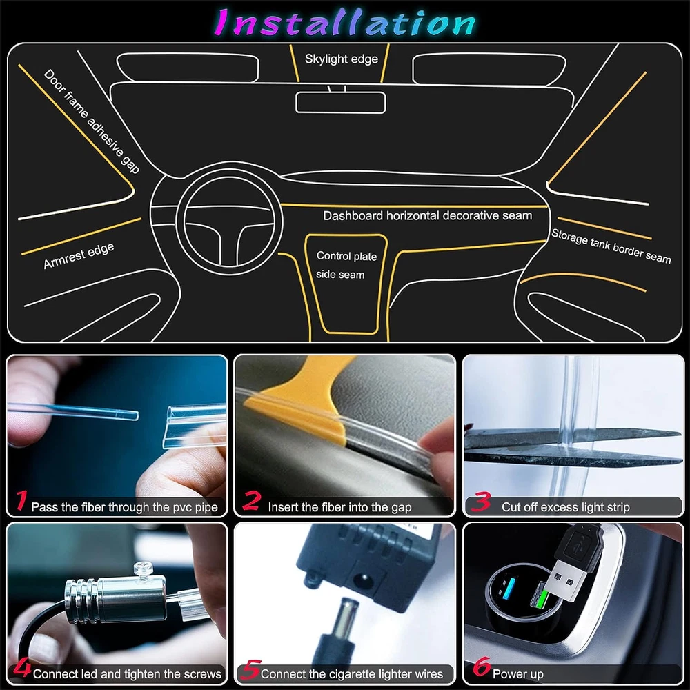 Store New Arrivals Add to Favorite View Feedback Contact Interior Car LED Strip Lights with Wireless APP and Remote Control, RGB 5 in 1 Ambient Lighting Kits with 236 Inches Fiber Optic, 16 Million Colors Car Neon Lights, Sync to Music Description Included Components function(f) {var _np=(window.P._namespace("DetailPageProductOverviewTemplatesJava"));if(_np.guardFatal){_np.guardFatal(f)(_np);}else{f(_np);}}(function(P) { P.when('A').execute(function(A){ A.on('a:truncate:po-attribute-truncate-5:updated', function(data) { var isTruncated = !data.truncateInstance.getIfTextFits(); var seeMoreElement = document.getElementById('po-attribute-see-more-id-5'); if(seeMoreElement) { seeMoreElement.style.display = isTruncated ? '' : 'none'; } }) }); })); 5 in 1 LED car light, RF remote, USB cable & positive and negative cable, 236" fiber optic and tube, Pry tool & manual See more Number of Pieces 5 Remote Control Included? Yes Color RGB 16 Million Colors Form Factor Strip Material Aluminum Alloy/ABS/PMMA Water Resistance Level Waterproof Item Weight 1.06 pounds Batteries 1 Lithium Metal batteries required. (included) Auto Part Position Inside Connectivity Technology Bluetooth, RF Recommended Uses For Product Vehicle Interior Special Features DIY, Music, Memory, Timing Vehicle Service Type Car, SUV, Truck Voltage 12 Volts Special Feature DIY, Music, Memory, Timing Package Dimensions 9.84 x 5.98 x 1.73 inches Light Source Type LED, Neon Fit Type Universal Fit [App & RF Remote Control]: You can easily control one or multiple sets of interior car lights by APP or remote. Turn lights on or off, dim or brighten, change colors, modes, DIY, timing and even adjust the speed of mode. [16 Million Colors & 29 Modes]: Enjoy over 16 million colors and 29 dynamic modes thanks to an intuitive DIY mode. Perfect for your different driving moods or different holiday decorations. [Sound Active & Music Mode]: With a built-in sensitive microphone, your car lights can dance to the rhythm of your music. The LED music light strip follow the beat and adjusts flashing to fit the strength of the sound. Create a great atmosphere for your family, friends, passengers. [Wide Range of Use]: USB powered car LED strip light is very easy to use and is universal fit for almost all cars, trucks, SUV, RV, boats etc. You'll enjoy a comfortable and vibrant driving experience. The fiber optic can be cut to any length and bent freely. If the fiber is too long, it is recommended to add an LED at each end, to ensure sufficient brightness. Please use and check the lighting effect at night. Product Description Why choose our JUSHOPE Interior Car LED Strip Lights? APP and RF remote control, turn on/off, set brightness, choose the mode you like. It's very convenient and easy operation. Built in 29 modes, music sync, blink, fade, jump, etc. Brightness adjustment, speed adjustment, DIY, etc. Vibrant colors and stunning lighting effects definitely make your car stand out. Super light guide, 360 degree for adjusting, simple design for you a beautiful, exotic and romantic interior. The interior car LED strip lights is compatible with all kinds of car, SUV, trucks. App Connection Steps: 1. Scan the QR code on the control box or search for “Lotus Lantern” in the app . 2. Turn on your phone Bluetooth. 3. Open APP and connect the light. (Connect Bluetooth in APP instead of mobile phone settings) Including RF Remote Control: Support APP and remote control at the same time. Remove the plastic transparent sheet before using the remote control. Multi-function Control Box: Built-in microphone, synchronized music. Built in 29 modes, brightness adjustment, speed adjustment, DIY, etc. USB Powered Convenient usb powered, plug and play. Suitable for a variety of scenarios, all kinds of cars, SUVs, trucks. High Quality: High quality RGB SMD5050 LED, aluminum alloy housing, HD lens, PMMA fixing screw. Universal Application: All automobiles and devices equipped with a 12V power source. Adjust Brightness and Speed: Brightness and speed can be adjusted from 1% to 100%. Music Sync: Built-in microphone, the light will change with the rhythm of music. TIPS: Please test the light before installation. If you have any questions about our products, please let us know. Go to product page "Sold by" - "Ask question". ABOUT US We offer the best prices around on high quality products. Our E-store includes media such as books, movies, music and games while offering electronics, toys, sporting apparel, clothing, tools, general home, garden items and more. SHIPPING We are always working hard to ensure your package arrives as soon as possible. Please understand that some factors like weather, high postal traffic, and the performance of shipping companies are outside of our control. We offer free shipping to the lower 48 states and ship within 2 business days of payment, usually sooner. We do not accept P.O. Boxes. Please provide a physical address. RETURNS We offer a 30-Day Return Policy on items which you are not completely satisfied with. You have the option for a full-refund or an exchange of the item. No returns are available on items shipped outside of the USA. PAYMENT We accept PayPal. CONTACT US This page content is yet to come Please ad us to your favorite seller and visit again later Thank You CUSTOMER SATISFACTION We try our very best to make sure every customer is completely satisfied. If there's a problem, message us! We're happy to help.