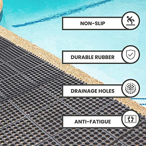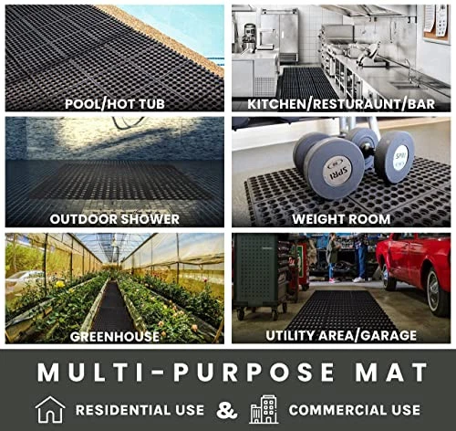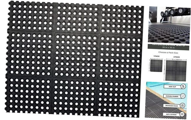 Menu 1. We require immediate payment. 2. We currently accept payment via eBay managed payments only. 3. Once payment is cleared, we will dispatch your shipment within 1-3 business days. Please refer to the "Shipping" tab for more information regarding shipping speed to your destination. Interlocking Rubber Floor Mat for Restaurant Kitchen Floor Anti Fatigue Bar Door Mat Non-Slip Indoor Outdoor Shower Pool Drainage, Durable Garage Flooring 36 x 36 Inch Product description Interlocking Rubber Floor Mat: The multipurpose rubber matting adds cushion and support without compromising its durable quality. The anti-fatigue interlocking mat tiles have drainage holes, making it functional as a restaurant mat, bar mat, pool mat, safety mat, rubber utility mat and garage floor mat. Non-Slip Bar Mat: For high traffic areas, a commercial kitchen mat improves traction, drains liquid and keeps work areas clean. Drainage holes in the rubber mat make it the ideal indoor-outdoor flooring protection mat, used as an outdoor doormat, entrance mat, shower mat, anti-fatigue kitchen mat, thick mat for utility areas and garage mat. Drainage Mat: Keep wet areas clean and dry by placing the anti-slip rubber flooring tiles on the floor to trap dirt, debris and liquid. The perforated holes of the kitchen fatigue mat provide quick drainage, commonly used as an outdoor shower mat, pool mat for ladders and decks, large door mat and gym mat. Durable Rubber Mat: Made from natural and recycled rubber, the interlocking rubber floor tiles are a planet friendly option for modular mats and industrial mats. Each rubber floor mat is 36 x 36 inches, sized for use as an outdoor square shower mat or as an anti-fatigue kitchen mat. Simply hose the interlocking floor mat with water to clean. Multipurpose Door Mat - Enhance your space with this rubber mat. Crafted for durability, it serves multiple purposes with its slip-resistant surface. Whether you need floor protection, anti-fatigue support, or a comfortable standing surface, this versatile mat has you covered. PLEASE MESSAGE US IF YOU HAVE ANY OTHER QUESTIONS, AND MANY THANKS FOR READING ALL OF THIS. Copyright ©#. All Rights Reserved.