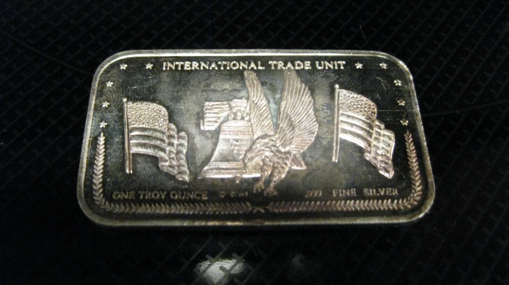 international trade unit 1 oz fine silver bar marked in 1\2 oz shows toning I have other silver listed