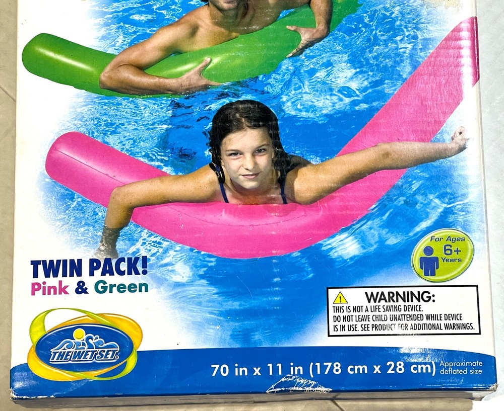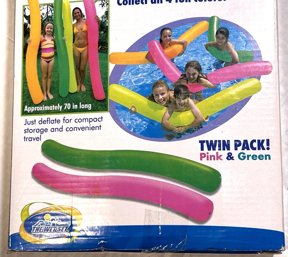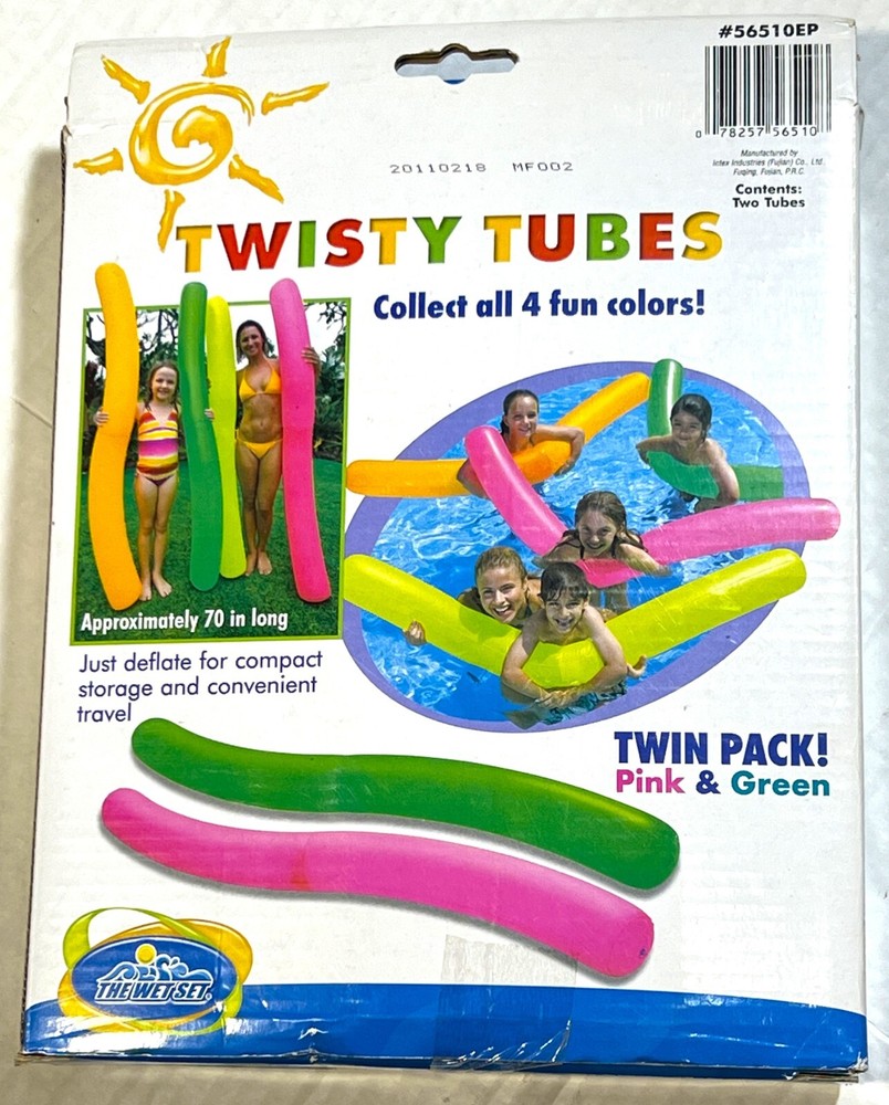 Brand NEW Sealed Intex The Wet Set 2 Twisty Tubes Inflatable 70" Long Pink & Green Pool Noodle Floats 2010. Measures: 70" x 11" Ages 6 & up.