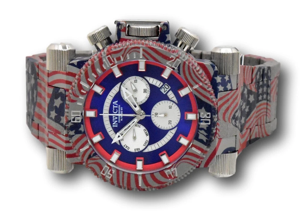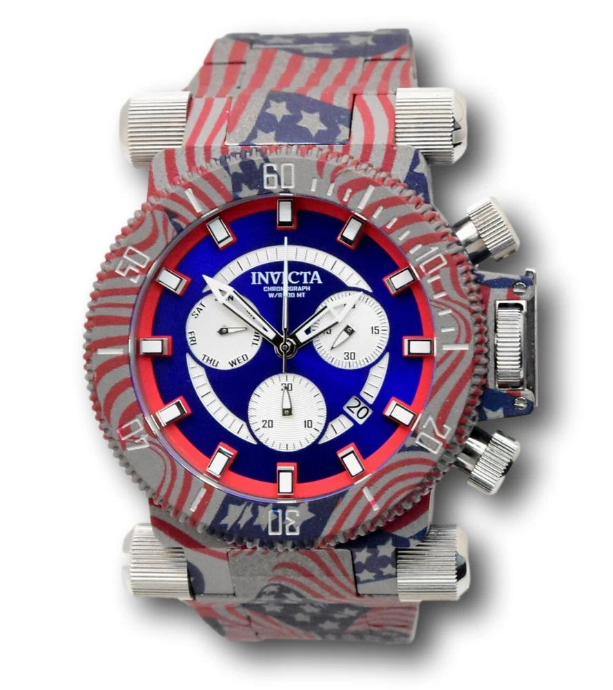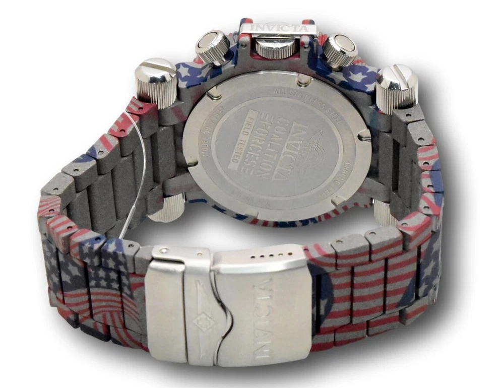 New - With Defects New and Unworn - No box - Watch day subdial points in between days - watch has minor imperfections from handling and storage - minor imperfections on the clasp - see pictures - watch is otherwise excellent condition and 100% Functional This listing includes pictures of the actual watches for sale LARGE watch - about 57mm wide including the crown guard piece - watch is about 17mm thick - watch weighs about 13.5 ounces Case size: 51mm wide or about 57 mm wide including the crown Thickness: 17 mm Weight: 13.3 ounces Items included: None - No box or manuals Max wrist size: 8.5 Inches Case and Dial Case Size: 51mm Case Material: Stainless Steel Bezel Material: Stainless Steel Bezel Color: Steel, Aqua-Plating Crown Type: Screw Down Crystal Type: Mineral Dial Material: Metal Movement Components: Swiss Caliber: Z60 FE Function Type: Quartz Water Resistance Water Resistance: 100m Band Material: Stainless Steel Tone: Steel, Aqua Plating Length: 210mm Size: 34.5mm Top Selling Disney Super Hero Star Wars New in Stcok TechnoMarine Contact Us Invicta Coalition Forces Men 52mm USA Flag HydroPlated Swiss Chrono Watch 26642 New - With Defects New and Unworn - No box - Watch day subdial points in between days - watch has minor imperfections from handling and storage - minor imperfections on the clasp - see pictures - watch is otherwise excellent condition and 100% Functional This listing includes pictures of the actual watches for sale LARGE watch - about 57mm wide including the crown guard piece - watch is about 17mm thick - watch weighs about 13.5 ounces Case size: 51mm wide or about 57 mm wide including the crown Thickness: 17 mm Weight: 13.3 ounces Items included: None - No box or manuals Max wrist size: 8.5 Inches Case and Dial Case Size: 51mm Case Material: Stainless Steel Bezel Material: Stainless Steel Bezel Color: Steel, Aqua-Plating Crown Type: Screw Down Crystal Type: Mineral Dial Material: Metal Movement Components: Swiss Caliber: Z60 FE Function Type: Quartz Water Resistance Water Resistance: 100m Band Material: Stainless Steel Tone: Steel, Aqua Plating Length: 210mm Size: 34.5mm This item includes a 100% Money-Back Guarantee! If you're not completely satisfied with your purchase, just send it back in the same condition within 60 days and we will refund the full purchase price of the item. We'll even cover the return shipping! (Only applies to USA orders). Please Note: We do not cover water damage for watches. We do not test or verify manufacturer's water resistance claims. Please use your watch in water at your own risk. To receive free return shipping: Next to this item in your ebay purchase history, click on "Return this item." Please choose "Changed-mind" as the reason for the return. This will allow you to print a pre-paid return shipping label. - Klawk Watches - We have been in business for over 8 years, with more than 25,000 customers from around the world. We specialize in Invicta watches and have many models that can't be found anywhere else. We have some of the lowest prices - and you won't find better customer service. We try to provide the best customer service possible. We hand-inspect each watch and test them to make sure they are completely functional before shipping them out. We also include a no-hassle 60-day warranty on all of our watches (this warranty only covers defects in the watch movement). Our 60-day warranty does not cover any damage from water or moisture. Neither Klawkwatches nor any manufacturer covers water damage under warranty. Use your watch in water at your own risk. We're happy to help! If you have any questions, Please let us know and we will get back to you within 24 hours. Shipping Returns Shipping Shipping Returns Shipping Orders are shipped daily. We generally ship items within 24 hours of receiving payment. We offer standard, Prioirty, and overnight shipping services. You can upgrade your shipping speed at checkout for the difference in shipping costs. Unless a shipping upgrade is purchased, items will generally ship as a First Class Package, the normal arrival time is 3-5 business days starting the day after the item is shipped. We do all of our international shipping through the eBay global shipping program. We ship the item to the eBay global shipping center and they will ship the item to you. eBay determines the international shipping costs and import fees for the item based on the item weight and your location. International shipments can take between 2-4 weeks to arrive depending on your location. Shipping Returns Returns Shipping Returns Returns If you're not completely satisfied with your purchase, you are welcome to return it within 60 days for a full refund. We will generally cover the return shipping costs if you are not satisfied with your purchase. Next to the item in your purchase history, you can click on "More Options" and "Return this item". This will allow you to print a pre-paid return shipping label. For international orders and returns, please contact us to make return arrangements.