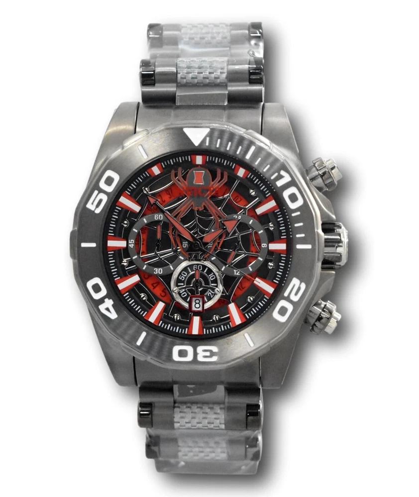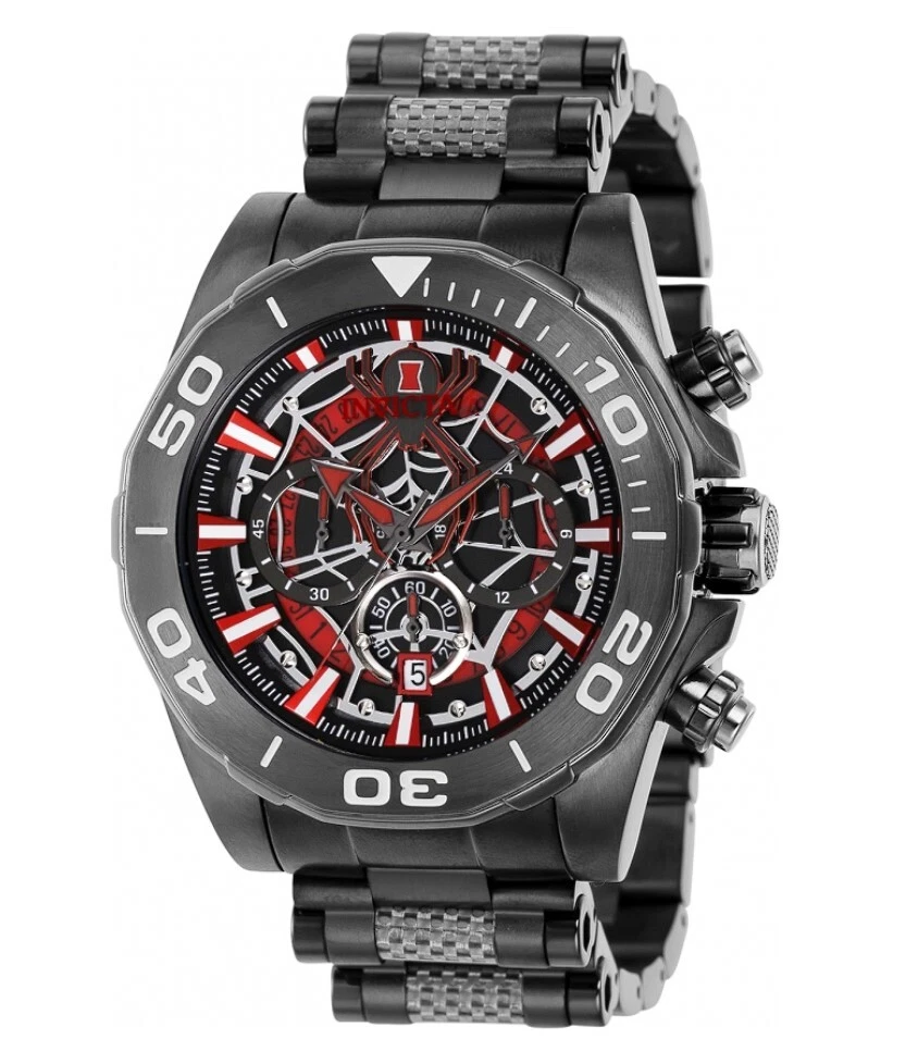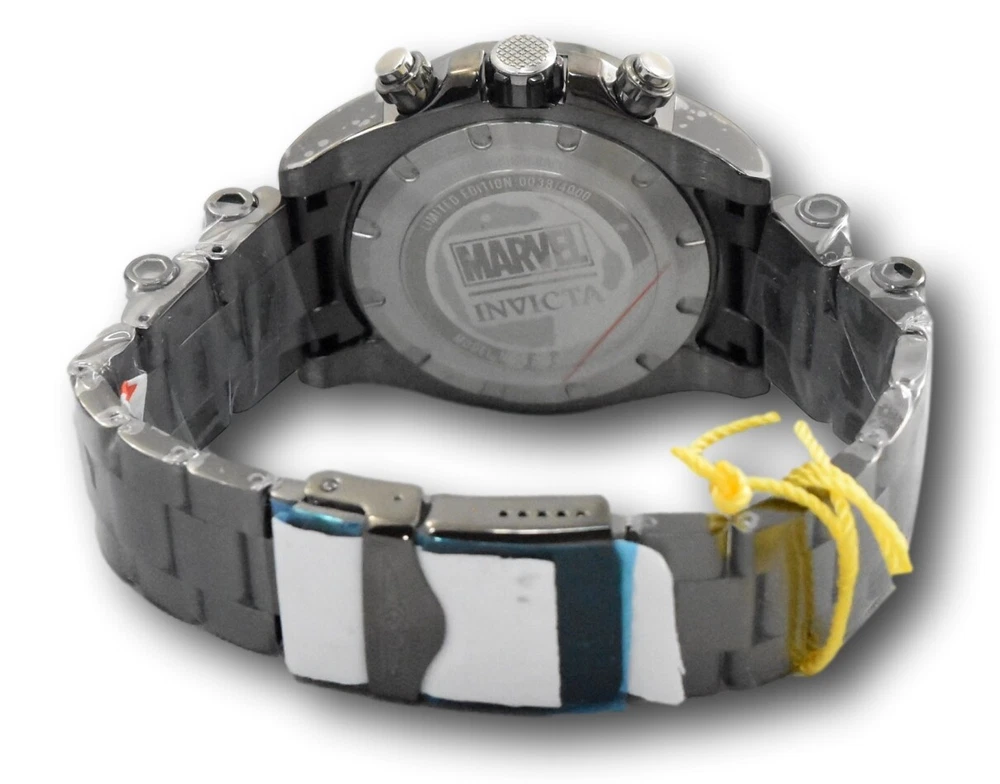 Case Color: Gray, Gunmetal MPN: 37834 With Papers: Yes Case Size: 48 mm Features: 12-Hour Dial, Chronograph, Date Indicator, Limited Edition, Luminous Hands, Push/Pull Crown, Rotating Bezel, Sapphire Crystal, Scratch-Resistant, Seconds Hand, Splash Proof, Water-Resistant Max Wrist Size: 8.26 - 8.5 in With Original Box/Packaging: Yes Bezel Type: Unidirectional Rotating Caseback: Screwback Case Reference Number: 37834 Department: Men Water Resistance: 100 m (10 ATM) Case Material: Stainless Steel Band/Strap: Bracelet UPC: 886678382873 Year Manufactured: 2020-Now Movement: Quartz Dial Style: 12-Hour Dial Bezel Color: Gray, Gunmetal gtin13: 886678382873 Model: Invicta Pro Diver Dial Color: Black, Gray, Multicolor, Red Age Group: Adult Customized: No Band Width: 24 mm Band Material: Stainless Steel Display: Analog Indices: Stick Indexes Case Finish: Polished Style: Casual, Classic, Dress/Formal, Luxury, Big Face, Bracelet, Cartoon/Novelty, Statement Type: Wristwatch Watch Shape: Round Face Color: Black Band Color: Gray, Gunmetal Original Packaging Description: With Box Brand: Invicta Character Family: Avengers Band Type: Bracelet/Link Band