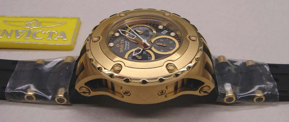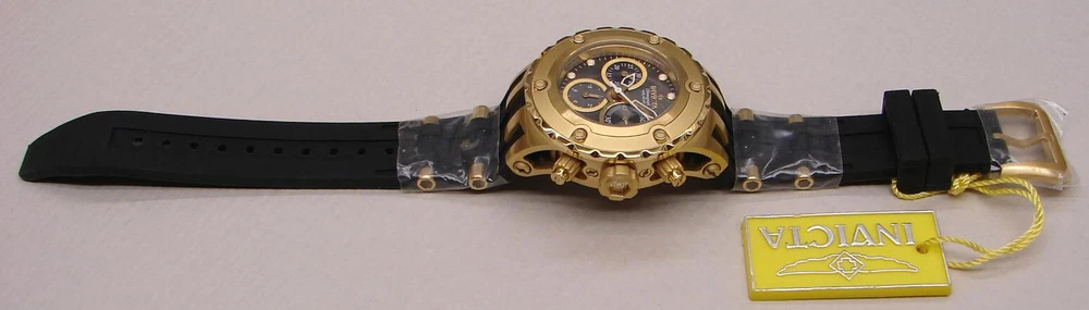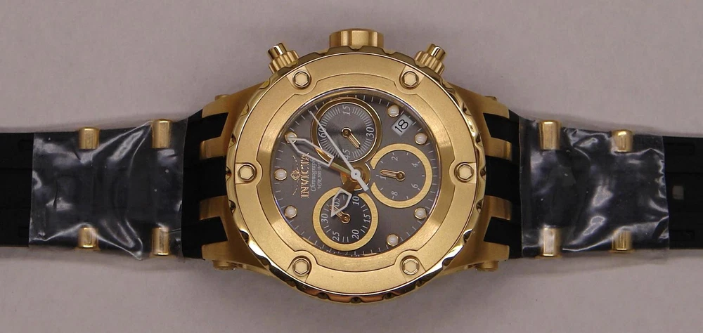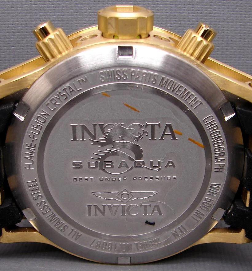 This is an unworn INVICTA SUBAQUA model 16087 Watch with Swiss Parts Ronda 5040.D Quartz movement. This is part of an Invicta collection I bought a couple years ago. Like many others in that collection, it was never worn - still had plastic film on front, back, and metal parts of band. Of course, over years of storage, the battery was dead, so I installed a new one (4/21/23; STILL RUNNING in 2024). The watch is running great since then. (By the way, although I neglected to do so after changing the battery until after taking the pictures, I have since reset all the chronograph hands to zero.) Another casualty of time was the polyurethane strap; it had hardened and broken into several pieces. I only recently was able to find a NEW Authentic OEM replacement, exactly like the original. I received and installed it on 5/18/23! So it is fresh and flexible, good to go! NOTE: Although produced as a Lady's watch, it is also suitable for men who aren't into wearing a clock on their arm, or whose wrist size is better served by a 40mm case size. Being such a man myself, the Invicta I wear is this size... This watch features: Stainless Steel Gold Tone Case and Bezel Gray Metal Dial with Sunray finish Date Indicator Water Resistant Luminous Hands and Markers Solid, Screw-On Back Mineral Crystal Push Crown 3 Subdials: Small Second Hand; Tenths of Second Hand and 30 Minute Hand for Chronograph Large Second Hand is for Chronograph New OEM Black Polyurethane Band with Gold Buckle and Accents Comes in a Yellow Invicta Dive Case It is marked on the back: "INVICTA SUBAQUA BEST UNDER PRESSURE SWISS PARTS MOVEMENT CHRONOGRAPH W/R 500 MT MODEL NO. 16087 ALL STAINLESS STEEL FLAME-FUSION CRYSTAL" NOTE: This item will be shipped Safely Packaged and Fully Insured. Please keep checking Saler's other items for MORE of the Neat & Unique! Be sure to add me to your favorites list ! Sign up for my email newsletters by adding my eBay Store to your Favorites Additional Keywords: Wristwatch, Ladies, Unisex, timepieces, collectible