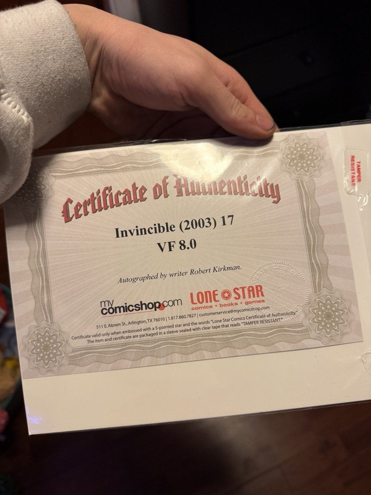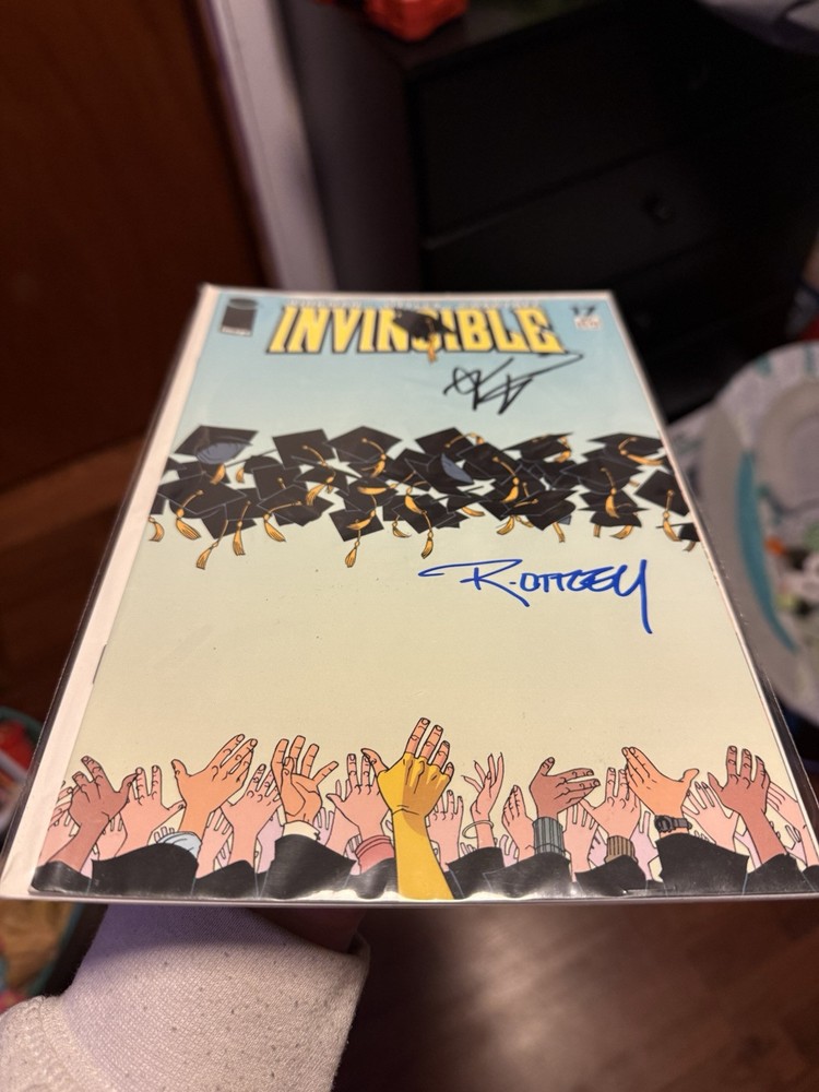 This is a rare and highly sought-after issue of Invincible #17, featuring autographs by Robert Kirkman and Ryan Ottley with a Certificate of Authenticity. Ryan OTTLEY signed at summer con in Puyallup 2024 The comic book was published in 2004 by Image Comics and Malibu Comics, and is part of the Modern Age (1992-Now) era of US Comics. The issue includes some of the most iconic characters in the series, such as Doc Cancer, Mark Grayson, Capes, Inc. Commander Capitalism, Kid Thor, Holly Winters, Amber Bennett, King Lizard, Mister Keene, Bolt, Debbie Grayson, B.N. Winslow, William Clockwell, Sanford, Invincible, Mauler Twins, Chad Anderson, Angstrom Levy, Atom Eve, and many others. The cover artists are Cory Walker and Bill Crabtree. This is a must-have for any serious collector of comic books and superheroes.