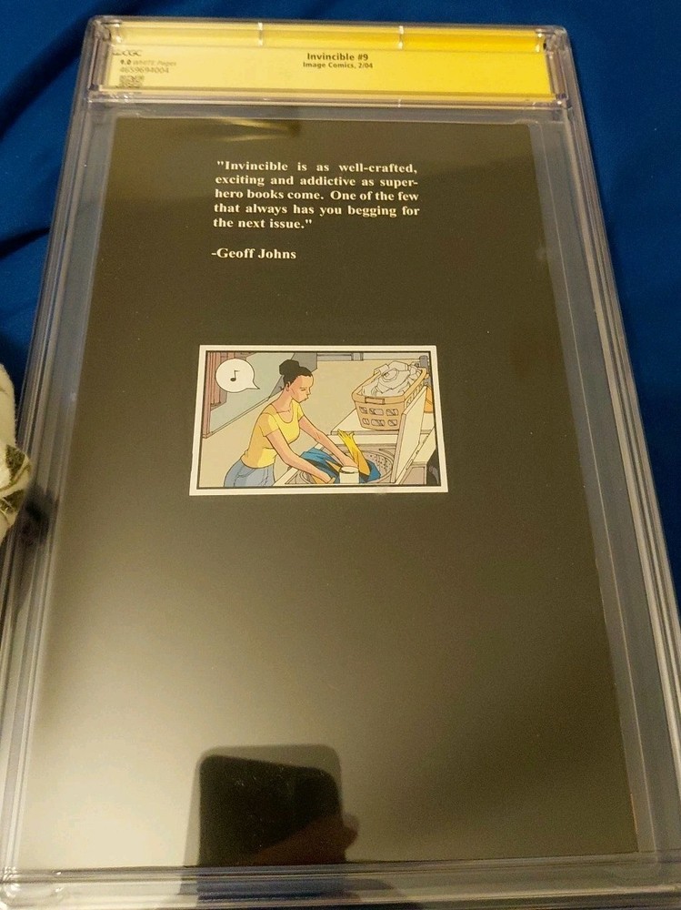 The product is a signed and graded Invincible #9 comic book from Image Comics, published in 2004. The comic features the character Bulletproof and is part of the Invincible series. It is a single issue in the Modern Age era of US Comics. The cover artist is Cory Walker, and the issue is authenticated by Certified Guaranty Company (CGC). This collectible item is a valuable addition to any comic book enthusiast's collection, showcasing the artwork and story of Ryan Ottley and the Invincible superhero team.